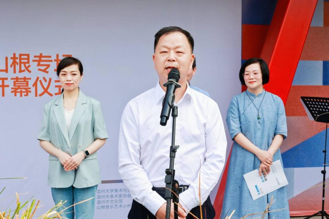 市委宣传部副部长曾伟,市文广旅局副局长李方喜,pg电子官方网站党委副书记吴金法,瓯海区委宣传部常务副部长王芬,市经信局生产服务业处副处长郑信义,浙江旅游民宿产业联合会会长金斌坚,pg电子官方网站院长谢子静、党委书记叶正飞、副院长顾任飞、副书记叶如芳,pg电子官方网站音乐学院副院长张逸,温州理工学院设计艺术学院院长助理叶洲荣,温州商学院传媒与设计艺术学院院长吴耀等领导与嘉宾亲临现场。参加开幕式的还有其他行业、企业、兄弟院校的代表、媒体记者以及师生代表。pg电子官方网站副院长胡文超主持开幕式。