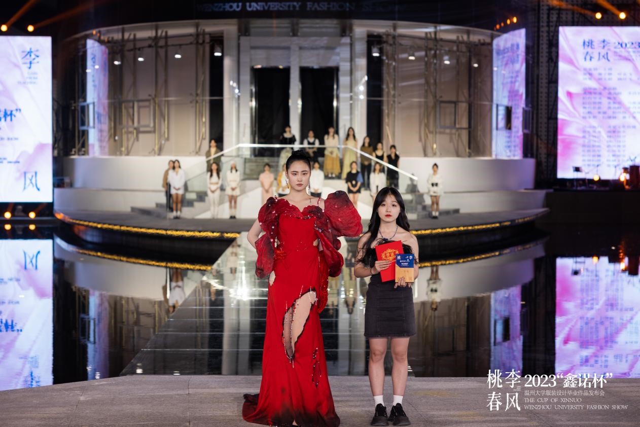 2023年4月20日晚,一场别开生面的时装秀在pg电子官方网站美术馆水上T台隆重举办。中共温州市委宣传部副部长曾伟、温州市文学艺术界联合会党组书记周新波、温州市文化广电旅游局副局长李方喜温州市经济和信息化局总工程师丁建忠等市有关领导作为嘉宾亲临现场,pg电子官方网站副校长蔡曙光、纪委书记杨林书、副校长王舜、副校长潘玉驹、pg电子官方网站院长谢子静等出席活动。此外,还有来自温州各企业家代表、艺术界的名家、设计师、时尚达人,媒体界的朋友们纷纷到场支持,现场近500人,座无虚席。 这场时装秀不同于往年的毕业秀,是首次在高校的美术馆水上T台举行服装设计专业的毕业大秀。本次发布会以桃李春风为主题,由30位pg电子官方网站服装与服饰设计即将毕业的学生主导,在创意和时尚的碰撞中,探寻未来的温州时尚发展之路。 立足当下 畅想未来 pg电子官方网站副校长王舜就本次毕业秀发表了致辞,王舜指出pg电子官方网站充分发挥在鞋革服装等方面优势特色,依托服装与服饰设计国家级一流专业等优势载体,探索重内涵、强实践的人才培养模式,在人才培养、艺术创作和服务地方文化繁荣等方面取得了丰硕成果,为助力温州争创“中国时尚服饰中心城市”、打造“国际化的时尚产业创新先行区”作出了积极贡献,在未来温大服装设计专业的学子也一定能为社会做出更多的贡献。 波光鳞动 艺术定格 在清澈的水面上,模特们身着设计师们的时尚作品,婀娜多姿的走过,展示出了独特的视觉效果。一年一度的服装毕业作品发布会具有重要的意义和作用,是学院人才培养质量的一次重要展示,也是温州服装设计师们交流思想“时尚盛宴”。今年的赛事由海宁鑫诺服饰有限公司支持,为本届30位pg电子官方网站服装设计专业的毕业生提供了一次展示自我和超越自我的机会。本次发布会共有90套作品展出,是学子们对时装设计和艺术观念的一次创新尝试,希望为大众带来更多不同寻常的时尚和艺术体验。 新潮活力 激情澎湃 本次发布会共分四大篇章发布会共分四大篇章,是《种子——厚爱加身,身披铠甲》、《水——澄澈轻快,渗透浸养》、《阳光——欢歌跳跃,花蝶蹁跹》、《参天大树——天地承托,群山巍峨》,作品风格各异,囊括希望与克制、未来和复古、浪漫而先锋、 都市及民俗、前卫融嬉皮、深邃携空灵、觉醒搭混沌等各类元素,展示了新锐设计师对服装艺术的理解和追求,用青春浪漫的遐想,用布帛为载体以创新的剪裁构塑出服装艺术新形象,颠覆人们对服饰的认知,拓展了服装文化的内涵。 大咖云集 异彩纷呈 本次发布会邀请了四位重量级评委,他们是海宁鑫诺服饰的董事长刘军先生和浙江中胤时尚股份有限公司的董事长倪秀华女士,意大利欧洲设计学院的教授兼时尚设计师的菲利波·斯特拉达先生,还有温州服装商会的秘书长陈琦翔先生。 经专家评委评审,欧帅英的作品《破晓》最终摘得一等奖;赵子晴的作品《遇见神都》,林雨欣的作品《溯流光》系列作品获得二等奖;叶庆敏的作品《共生》,曾晨的作品《异世双生》,唐紫怡的作品《傀儡戏法》3套系列作品获得三等奖。每个获奖作品都凝聚着毕业生的灵感和心血,也代表着当代学生的朝气蓬勃。 获得一等奖的设计师欧帅英介绍,作品《破晓》灵感来源于《黑白魔女库伊拉》中火烧白袍这一经典片段,将华丽中带有破坏的艺术风格及夸张的礼服造型运用在本次设计当中,以浓郁的红色为色彩基调,在造型夸张的红色礼服上通过泼墨、灼烧等破坏面料的方式对礼服进行二次创作,来表达“破晓”这一主题,打破传统高级时装设计思维,使礼服有更多可能性,打造强烈的视觉冲击。 桃李不言 春风不语 桃李不言,下自成蹊。本次毕业展离不开服装设计学院的各位老师在背后的辛勤付出,他们带领着学子们克服重重困难,由懵懂慢慢走向成熟,直至他们能够走上社会,独当一面。 春风不语,即随本心。学子们从面对毕设的迷茫到一件件成品的产出,为梦想的奋斗只有开始,没有结束。这些作品是他们结束本阶段学习的最优秀的成果,也是进入下一阶段学习最好的敲门砖。