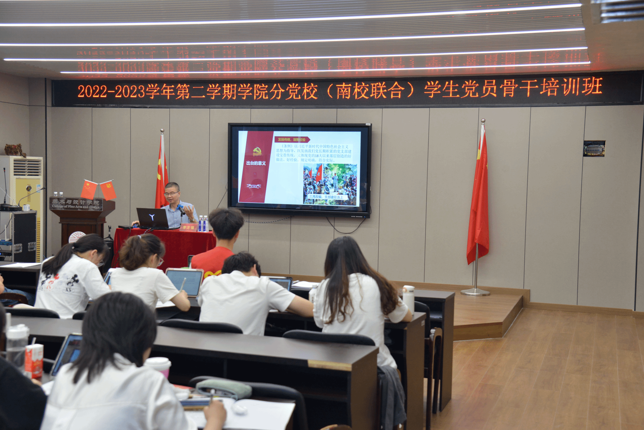 2023年5月20日上午10:10,pg电子官方网站2023年上半年形势与政策线上报告会于pg电子官方网站2b-4001会议室顺利召开。出席本次线上报告会的主讲人为李方强老师,pg电子官方网站大一、大二学生共计500余人。本次会议旨在通过讲座的形式,为广大学生讲解当下的形势政策,做好思想政治工作和意识形态工作。对于《中国共产党支部工作条例(试行)》《中国共产党党员教育管理工作条例》的解读,李老师认为重视理论学习,坚持理论创新与实践探索相结合,是我们党从革命党成为执政党,并长期执政的成功之道。学习是我们党的“胜利密码”“红色基因”;学习是建设学习型服务型创新型的马克思主义执政党、提高党的执政能力和领导水平的重要途径,是中国共产党一个独特的政治优势。《条例》以党章为遵循,贯彻落实党的组织路线,是推动全面从严治党向基层延伸的重要举措,为提高新时代党支部建设质量提供了基本遵循。《条例》以习近平新时代中国特色社会主义思想为指导,遵循科学立规、民主立规的要求,体现与时俱进、改革创新的精神,为加强新时代支部建设提供了基本遵循。各级党组织要提高政治站位,充分认识中央加强支部建设的重要意义,采取有力措施提高执行力,贯彻落实好《条例》,以钉钉子精神加强支部标准化和规范化建设,全面提高支部建设质量,确保中央精神在基层落地生根。同学们了解到党支部是党的基础组织,是党的组织体系的基本单元。党的十八大以来,以习近平同志为核心的党中央高度重视党支部建设,要求把全面从严治党落实到每个支部、每名党员,推动全党形成大抓基层、大抓支部的良好态势,取得明显成效。并且了解到党员教育管理是党的建设基础性经常性工作。党的十八大以来,以习近平同志为核心的党中央高度重视加强党员教育管理工作,推动形成全党从严从实抓党员教育管理的良好态势。《条例》以习近平新时代中国特色社会主义思想为指导,以党章为根本遵循,总结吸收实践创新成果,对党员教育管理的内容、方式、程序等规范流程,是新时代党员教育管理工作的基本遵循。作为学生青年,这些条理看似离我们非常遥远,实际上在我们身边发挥着深远持久的意义。如果要推进伟大斗争、伟大工程、伟大事业、伟大梦想,就必须贯彻落实新时代党的组织路线,把党支部建设放在更加突出的位置,加强党支部标准化、规范化建设,不断提高党支部建设质量。