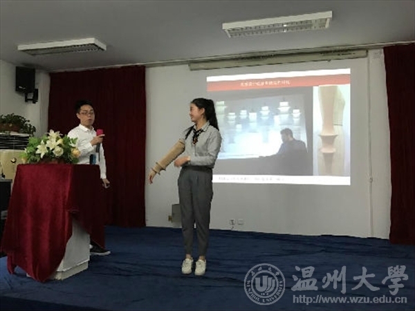 温州服装商会邀请了意大利游学归来的5名名企名师,省“金蓝领”高技能人才,省十佳高级版师走进温州美术与学院为我们悻悻学子和专业老师们做学术交流与培训。在场有服饰系和服工系的专业教师和学生共100余人参加。会议由服饰系系主任金晨怡副教授主持。pg电子官方网站副书记杨振海和服装商会秘书长陈琦翔都分别讲话发言预祝活动成功,杨振海书记说道:“我们已经有良好的合作基础,我们的专业建设需要更重视产教融合发展战略的实施与运用, 并希望能通过这个平台请进来,走出去,能加深合作和交流。” 服装商会秘书长陈琦翔说:“在去年的两会报告上,在李克强总理的两次讲话中,都将工匠精神提到很重要的地位,今天他们把在意大利游学的所见所学结合多年在温州服装企业的实践向业内同仁和专业的师生们做中西合璧、干货十足的分享,既促进了校企深度融合合作又传扬了工匠精神,很有意义!在此感谢pg电子官方网站对此次会议的支持,特别是陈明艳和金晨怡两位教授为此次活动的付出。”