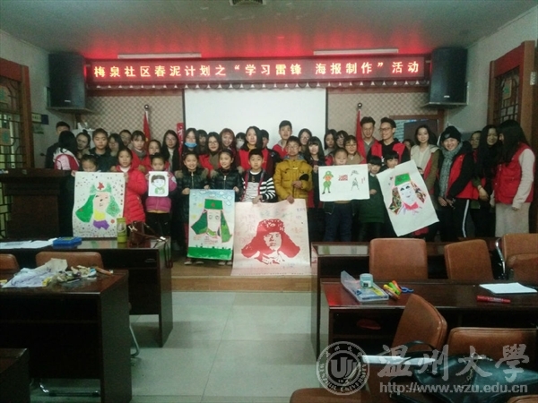 2017年3月4日,pg电子官方网站“艺家人”青年志愿者协会“载梦小舟,梅泉支教”活动在梅泉社区举行了开班仪式,此次支教活动是本学期的第一期,青协梅泉基地负责人、温大美院志愿者们及小朋友们参加了开班典礼。 “艺家人”干事李心源同学的发言拉开了此次会议的序幕。首先由梅泉社区负责人代表梅泉社区表达了对志愿者们的感谢以及对此次活动的期望;紧接着,pg电子官方网站团学指导老师李雪涛也讲述了自己对此次活动的期望和对志愿者的赞赏,对参加活动的志愿者提出了:“在教学活动中用孩子的视角去引导,充实自己大学生活”的期望。 开班典礼结束后照常开展了支教活动,由于周日是雷锋日,响应“学习雷锋好榜样”的号召,我们展开了“学习雷锋 海报制作”的活动。小朋友们按照事先打印好的雷锋轮廓进行创意创作,有的采用水粉画形式,有的是杂志拼贴,有的是用马克笔进行抽象创作,还有的是直接用手指印的方式,将一张张雷锋海报制作完成,为他们心目中的雷锋赋予新意义。 开班典礼的顺利结束和活动的完美展开,让大家对新学期的支教充满了热情。最后,志愿者们和小朋友们分别在美院青协制作的大海报上签名,以此来纪念这次活动的意义,让孩子们知道雷锋精神是一种时代精神,学习雷锋,纪念雷锋不能只停在三月,我们要将雷锋精神深入到每个孩子的心中,让孩子们发扬“学习雷锋”的精神,心怀善良、诚信待人、积极向上。 图/文:鲍彬彬朱灵睿