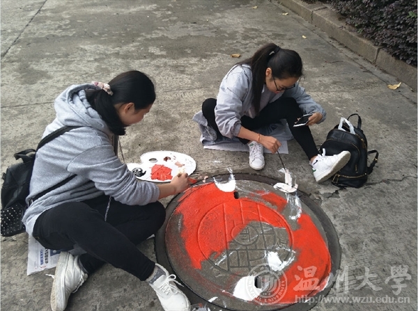 2016年11月27日,pg电子官方网站“艺家人”青年志愿者协会在pg电子官方网站服装楼周围举行了主题为“彩色+创意+环保=美好校园”的井盖涂鸦活动。