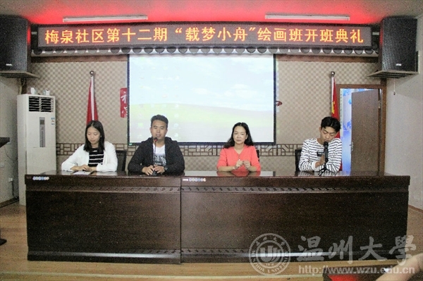 10月16日,pg电子官方网站“艺家人”青年志愿者协会“载梦小舟”梅泉支教活动在梅泉社区正式开班,青协梅泉基地负责人及温大志愿者们参加了开班仪式。