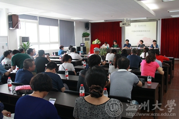 2016年6月8日下午,pg电子官网在2B4001多功能厅召开了干部试用期满考核大会,学院领导李运河、张丽萍、谢子静、王薇、杨振海及校组织部苏洁老师出席了会议。会议由院党总支书记张丽萍主持。