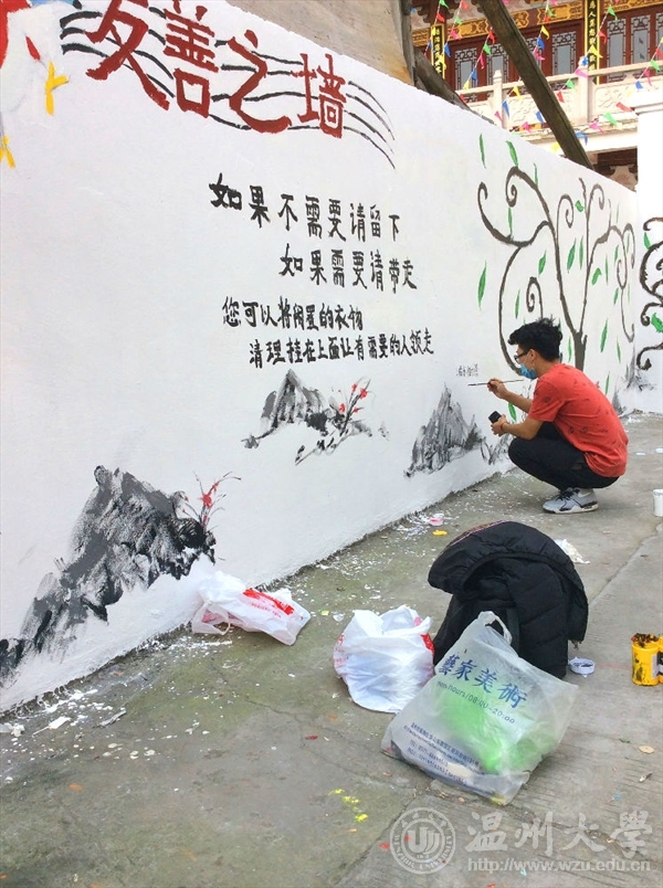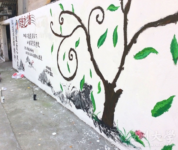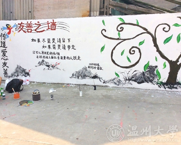 为了响应与落实市委“新青年下乡”主题精神,2016年3月26日早上八点,在pg电子官网青协的带领下,来自pg电子官方网站的志愿者们前往到乐清城东街道后所村老人亭,进行了为期一天的墙绘活动。本次“新青年下乡”墙绘活动,以“弘扬雷锋精神,传递爱心友善”为主题,呼吁人们将自己的旧衣物捐给有需要的人们。这不仅是一次物质上的贡献,更多的是精神上的支持与帮助。志愿者们通过画笔和色彩,将自己想要传达的信念幻化成一颗颗正在茁壮成长的绿树,希望“雷锋精神”这一理念像这茁壮成长的绿树一样,青春常在,精神永驻。我们本次的墙绘活动一方面主要是运用专业知识与技能去服务社会,向社会宣传大学生们所理解的“雷锋精神”,呼吁社会弘扬“雷锋精神”,真正做到专业与实践相结合,使我们融入到社会中去,为社会奉献出自己的一份力量;另一方面,不仅让我们有机会了解农村、服务农村,还让我们在基层学到了许多平时难以不到的知识技能。 文:林依如图:林依如