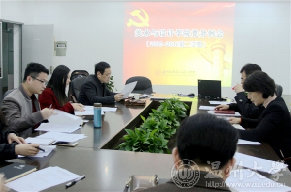 2016年3月30日上午8:30,pg电子官网在2B216会议室召开新学期党务工作例会。参加本次会议的有学院党总支委员、教工支部和研究生支部书记。会议由学院党总支书记张丽萍主持。 首先,张丽萍从六个方面对上个学期总支工作进行了全面总结:一是加强党的自身建设。进一步强化学院领导班子建设,明确分工、充分协作、发挥整体效能,积极建设学习型、民主型、实干型、廉洁型的领导班子;扎实开展“三严三实”、党规党纪的学习教育活动;加强制度建设,颁发了4个制度性文件;认真执行党政联席会议制度和院务会议制度。抓好党员队伍建设,强化党员的理论教育学系和教育实践活动。二是发挥党管人才、党管干部的作用,完成全院教职工聘任工作和科级干部选聘工作,做好青年教师培养和人才引进工作。三是如期召开学院第四届第一次教代会。四是认真开展师德师风和精神文明建设工作。五是积极开展党建带群团工作。六是积极开拓新媒体平台,高度重视宣传工作。 接着,美术、设计、服装、行政及研究生五个支部书记分别对上学期的工作进行总结,并提出本学期的支部工作计划。学院院长、党总支副书记李运河对各支部工作予以充分肯定和赞赏,并提出了三点建议和要求。他强调,一是要进一步加强学习,使支部工作更加有的放矢;二是要进一步加强宣传,要善于总结、善于提炼素材,要选择合适的平台加强宣传工作;三是要充分结合各支部的专业特点和特色优势,深入做好支部建设工作。 会上,张丽萍提出了学院2016年上半年党总支工作计划,分别从强化思想理论建设、夯实基层组织建设、做好意识形态工作、加强宣传和文化工作、加强工会小家建设和谐学院、加强学生教育管理以及安全稳定等方面阐述了本学期工作要点。与会成员就总支计划进行了热烈的学习讨论。 最后,张丽萍做总结讲话。她强调,2016年是pg电子官方网站也是美术设计学院十三五规划的开局之年,更是全面贯彻党的十八大及党的十八届三中、四中、五中全会精神的重要时期。全体党员干部尤其是总支委员和支部书记,要在新的历史时期,以主人翁姿态主动承担起学院发展的改革重任,以提升学院整体工作为目标,以“把牢方向、夯实基础、发挥优势、做出特色”为要求,为人才培养质量的提高和学院建设发展美好蓝图的实现提供强有力的组织保障。