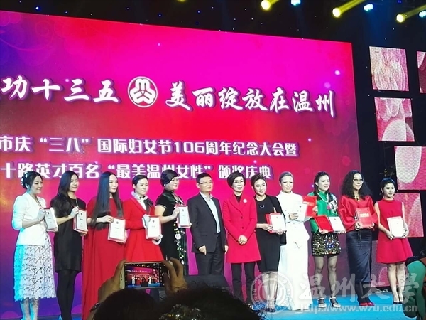 昨晚,在市妇儿活动中心举行的庆祝“三八”国际妇女节106周年纪念大会暨十路英才百名“最美温州女性”颁奖庆典上,pg电子官网服装与服饰专业教师叶茜获得“最美温州女性之时尚女性”称号。