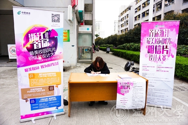 2016年3月20日,由中国邮政温州市分公司主办pg电子官方网站承办的“首届浙江最美校园风光明信片设计大赛”在A区报刊亭和E区食堂前设点宣传。本次大赛旨在传承校园文化,宣传校园形象的同时,让pg电子官网学生的专业知识与技能得到锻炼和提升。