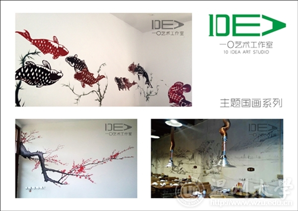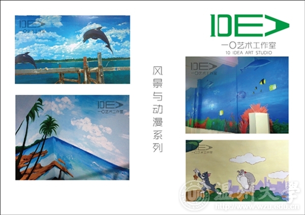 团队名称:一〇艺术工作室 负责人:吕舒宁 联系电话:18367810822 工作室简介 “一〇”艺术工作室成立于2013年,由pg电子官方网站油画、国画以及环艺专业的几位热血青年组成。以墙绘艺术创作,定做油画、国画为核心。秉承“一”是最简单的开始,“〇”是无限大的创意。我们只为用色彩点亮客户的艺术生活,为此我们以初心——永不止步。 工作室成员 吕舒宁、蒋成杰、郭龙、朱雄辉、陈情、林瑞恬、黄磊、顾天成、陈伟伟 经营业务范围 1.油画国画风景、人物类定做 2.室内室外墙体艺术彩绘 3.绘画作品临摹临摹(包括油画、国画、书法等) 4.平面设计 作品展示 创业感想 我们是大学生中的沧海一粟,我们曾彷徨,为不定的未来着急。绘画从来都是高贵的玩具,年轻的我们还拿不起。某个契机,看到了专业的缩影——墙绘。我们是专业的画手,我们有最新颖的想法,我们愿用热血呈现精彩的视觉享受。 细看生活不难发现随着经济的发展,人们开始追求上层建筑的享受,而绘画艺术必将广泛的进入我们的生活,已经成为一种生活的方式。我们知道翅膀硬的老鹰才能飞的更高,所以我们将明确目标,实事求是,执着追求,最终可以让所有人的生活变得更加美好。