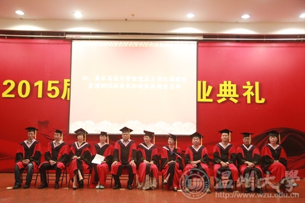 6月17日下午,pg电子官方网站在岩松堂雁山厅隆重举行2015届本科生毕业典礼暨学位授予仪式。出席典礼仪式的领导有:pg电子官方网站校长蔡袁强、pg电子官方网站院长李运河、党总支书记张丽萍、副院长谢子静、副院长王薇、办公室主任李丽、学生科科长叶如芳,美术系主任陈伟、设计系主任朱广宇、服装系主任陈明艳、教授舒湘鄂、教授魏静、教授邓国祥、教授李勋祥、教授蔡瑞蓉、博士张晓剑。此外,全体毕业班班主任、教师代表、全体毕业班同学参加了本次典礼。学院党总支副书记杨振海主持典礼。 首先,进入第一篇章《只如初见 恍如昨日》,主要有电子相册的播放、微电影《献给毕业的你》、以及诗歌朗诵《今天,我们毕业了》等内容。追忆四年,一幕幕场景、一段段音符,串连成一部画面与音乐交织的大学电影,播放着曾经的快乐与忧伤,记录着同学们曾经的青春与过往,也见证着拥有的友谊与深情! 随即进入第二篇章《青葱年代 凤凰花开》部分,学院副院长谢子静宣读了校优和院优毕业作品获得者名单,学院党总支书记张丽萍宣读了省优和校优毕业生获得者名单,院长李运河、书记张丽萍、美术系主任陈伟、设计系主任朱广宇、服装系主任陈明艳、教授舒湘鄂、教授魏静、教授邓国祥、教授李勋祥、教授蔡瑞蓉、博士张晓剑一一为他们颁奖、合影留念以资鼓励。 紧接着典礼进入第三篇章《亦师亦友 常忆相思》部分,学院为全体毕业生赠送纪念品——由美院学生原未手工皮具工作室制作的卡包。 为了更好的与毕业生保持联系,学院特意设立了各班级的校友联络员,学院副院长王薇宣读了名单,院长李运河、书记张丽萍为每位校友联络员颁发聘书。 接着,由省优毕业生11美本师范班马俪净代表2015届毕业生发言,她回忆了在温大的学习与生活经历,并表达了毕业生们即将离开的不舍和即将高飞的壮志。精彩的发言引起了在场毕业生们的共鸣,赢得了阵阵的掌声。 至此进入第四篇章《寄语明天情深道远》,院长李运河为2015届全体毕业生致辞!他祝愿大家以正确的世界观、人生观、价值观来指导自己的选择。志存高远,增长知识,锤炼意志,让青春在时代进步中焕发出绚丽的光彩,未来的自己,一定会感激现在努力的自己。 接着在校的学弟学妹代表为全体毕业生献唱《温大青年之歌》。 最后,典礼进入高潮部分,由pg电子官方网站校长蔡袁强为每位毕业生一一拨穗、颁发学位证书,并合影留念。这隆重的毕业典礼将成为每位学子心中最美好的回忆。祝福毕业生同学们明天更加辉煌灿烂!前程似锦!