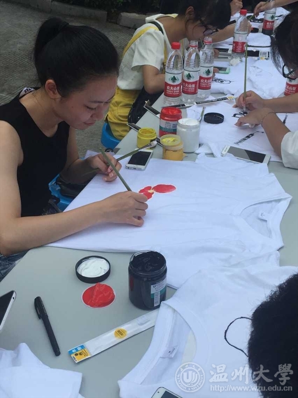 6月7日下午,pg电子官方网站“艺家人”青年志愿者协会与温州市禁毒所在超豪学区进行“乐行学子梦”之世界禁毒日“禁毒于行,绘衣铭记”公益活动。志愿者们认真地用画笔在白T恤上绘制具有深度思考力的禁毒图样,活动氛围吸引一些路过的大学生纷纷驻足观看,有不少同学加入禁毒日活动中来要求一起绘画合影。同学们在白衬衫上加上自己对禁毒的感言和感悟,并且与自己的作品合影。这次活动激发了大学生用自己的专业知识向社会传播正能量关,增强了大学生的社会责任感。 拍摄者:张豪 通讯者:祝怡宁