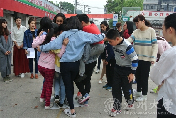 为更好地贯彻落实党的十八届三中全会关于“强化体育课和课外锻炼,促进青少年身心健康、体魄强健”的精神,4月18日,pg电子官方网站艺家人青年志愿者协会与梅泉社区小朋友们开展了“走下网络、走出宿舍、走向操场”主题课外趣味运动会。