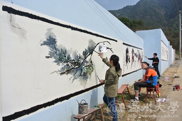 3月22日,pg电子官方网站“艺家人”青年志愿者协会在瓯海区潘桥街道东边村完成了上百米的“美化街道”主题墙绘。此次墙绘规模宏大,尽管当日天气炎热,工作量繁重,但志愿者们相互协作分成五个组进行,干劲十足。活动开始片刻,单调的墙面就在志愿者的巧手上勃勃生气。高洁的兰,傲雪欺霜的梅,静谧的荷塘还有气势恢宏的奔腾万马,一幅幅美轮美奂的画作在原本洁白的墙面活灵活现,让人目不暇接。 志愿者通过墙绘号召大家保护环境从身边做起,美化街道从我做起,此次活动受到村长和村民们的一致好评。 通讯、拍摄:刘子彰