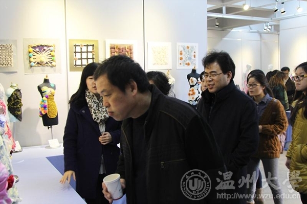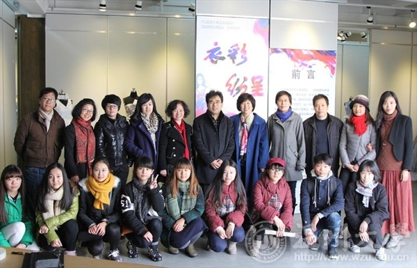 2015年1月12日下午,pg电子官方网站院长李运河、副院长蔡可群、党委书记郑彩莲、副书记杨振海、院办公室主任李丽、服装系主任陈明艳等一行人,莅临“衣彩纷呈”课程联展现场参观指导,为此次课程联展拉开了序幕。
