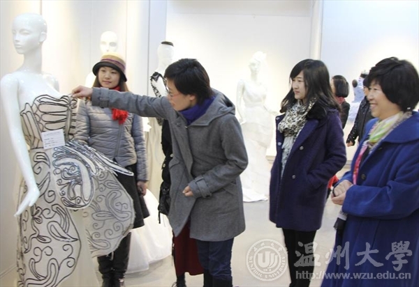 2015年1月12日下午,pg电子官方网站院长李运河、副院长蔡可群、党委书记郑彩莲、副书记杨振海、院办公室主任李丽、服装系主任陈明艳等一行人,莅临“衣彩纷呈”课程联展现场参观指导,为此次课程联展拉开了序幕。 《礼服设计与立体造型》《服装面料再造》课程联展,以“衣彩纷呈”的主题,以“培养学生创新创意思维,提高综合应用所学的专业知识,激发学生学习活力”为宗旨。通过礼服、创意装、面料二次创意等设计作品的汇报展出,强化学生的实际动手能力,反应课程改革的成果,并给学生提供了自我展示的平台和互相交流学习的机会。本次展览由11级艺术服装2班24名同学的作品组成。参展的礼服习作共计20件(套),创意装设计24件;面料二次创意设计46件。礼服设计突出艺术手法运用与效果表达,注重品质与流行元素的运用,同时注重搭配与材料的创意创新,强调手工制品的艺术表现手法和多元融合化;面料再造设计以原始面料为出发点,以激发学生无止尽的想象与创造能力为培养目的,强调面料二次设计手法与面料材质的适应性,旨在创作出与时尚接轨并引领潮流的面料创意产品。这些作品反应了学生学习与劳动的成果,也是魏静、陈莹、叶婷三位指导教师细心指导的结晶。