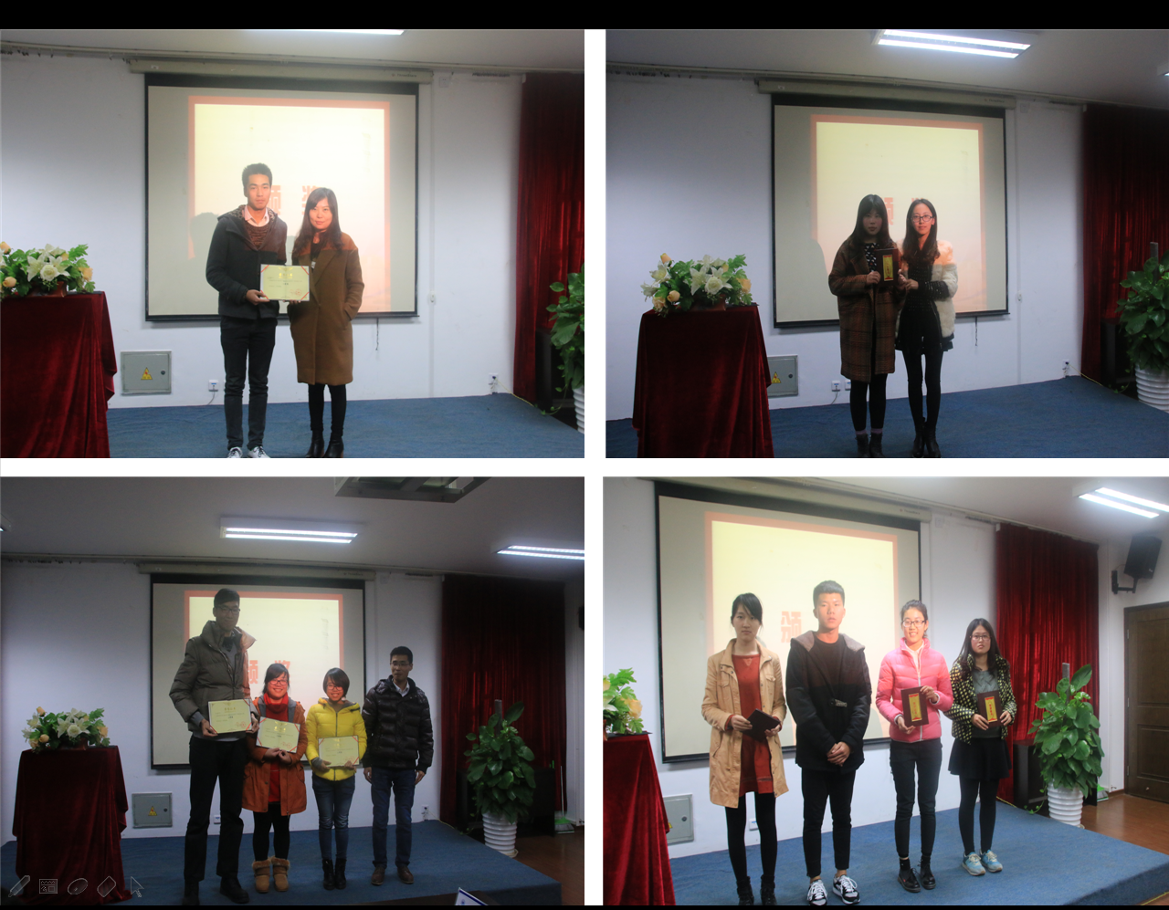 2014年12月24日下午,由pg电子官网团学创业就业部和温大创业协会联办的为期半年的“德修身&创青春”创业就业系列培训活动于美院2B4001会议室,圆满地落下了帷幕。出席本次终极考核的嘉宾有pg电子官网学生科辅导员杜茜老师、陈赛慧老师、温州仟度品牌设计有限公司负责人任旭宇先生和商学院研究生杨奇学长担任评委。来自校本部、城市学院和瓯江学院的学生们都积极参加了本次终极考核。