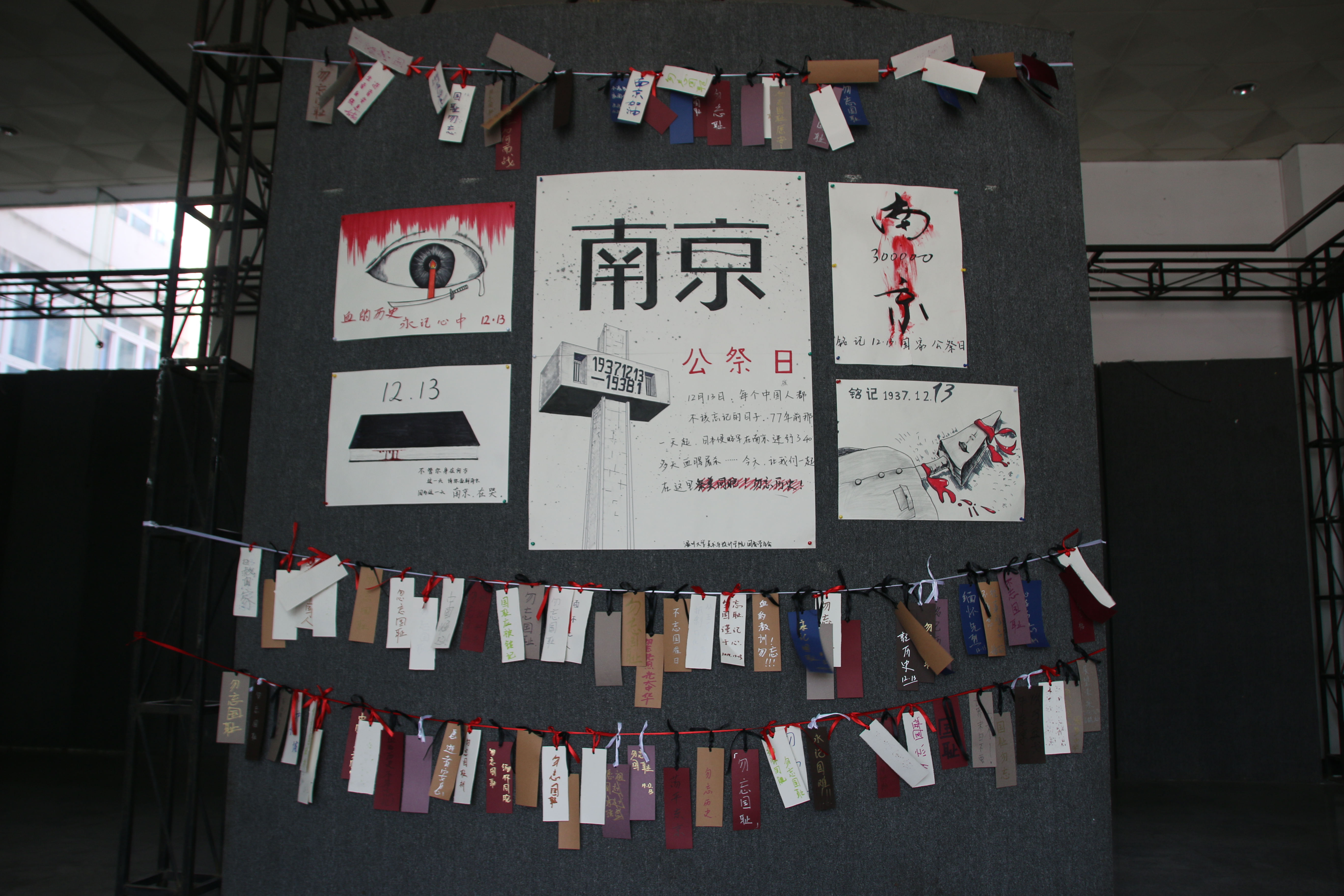 12月13日当天,pg电子官方网站团委学生会创业就业部与学风纪检部为响应本次国家公祭日,在超豪学区开展举办了祭语公祭悼念活动。本次活动展出了两张手绘悼念大海报及多张手绘宣传公祭漫画,同时开展了温大学子亲手写寄语、挂祭语活动。一同为南京大屠杀遇难人民哀悼,缅怀抗日先烈,勿忘国耻,铭记历史。