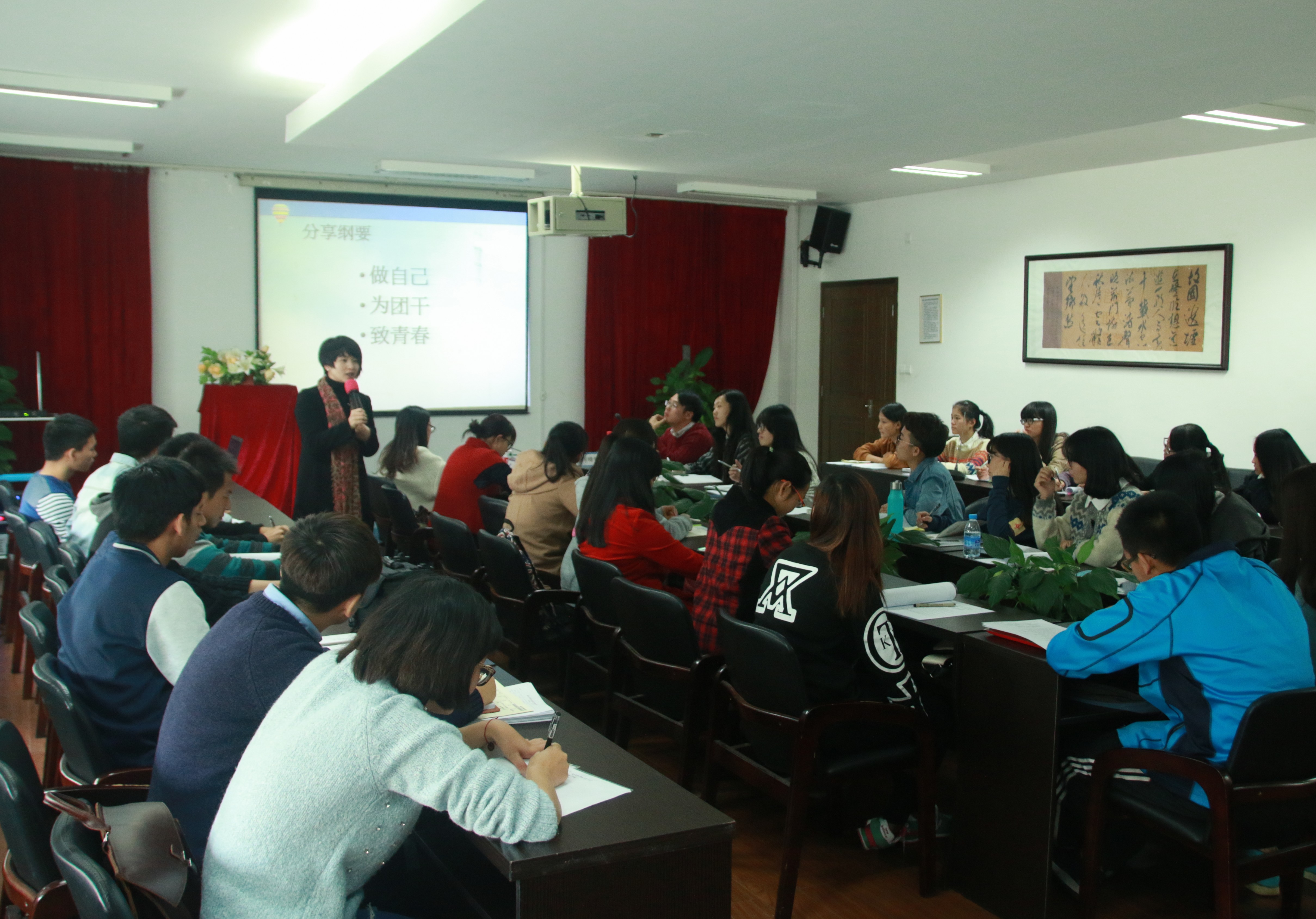 2014年11月19日下午,pg电子官方网站第二次团干培训在2B4001举行。本次培训我们特邀校团委办公室副主任、国家二级心理咨询师、张怡筠情商教育指定课程版权讲师王晓华主讲。团委学生会及班长联合会全体成员积极参加了本次培训。培训讲座由团委副主席冯瑜瑜主持。