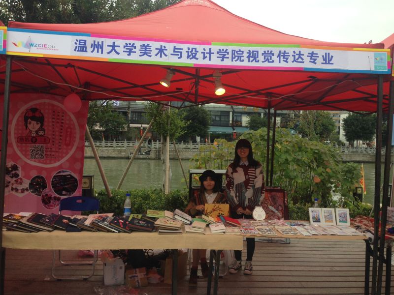 2014温州时尚文化创意产业博览会在我市隆重举办,它是一场历时7天的时尚文化饕餮盛宴。以“创意都市、时尚生活”为主题,旨在加快推动温州文化创意产业发展,带动“温州制造”向“温州智造”转变。 为了积极响应和推动温州文化立市的政策,也为了激发学生的创意意识,视觉传达专业周瑾等老师结合课程内容,组织12设计和12师范班学生参加秦际白鹿洲文化村创意市集活动,学生的手创本等作业颇受市民的青睐。让学生在活动中交流创作经验,展示最新的原创手作,感受获得市场肯定的成就感,这就是学生参加此次活动的初衷。 希望,以后pg电子官网的设计教学能把握更多的此类互动平台,来推动pg电子官方网站视觉传达专业文化创意人才的培养。