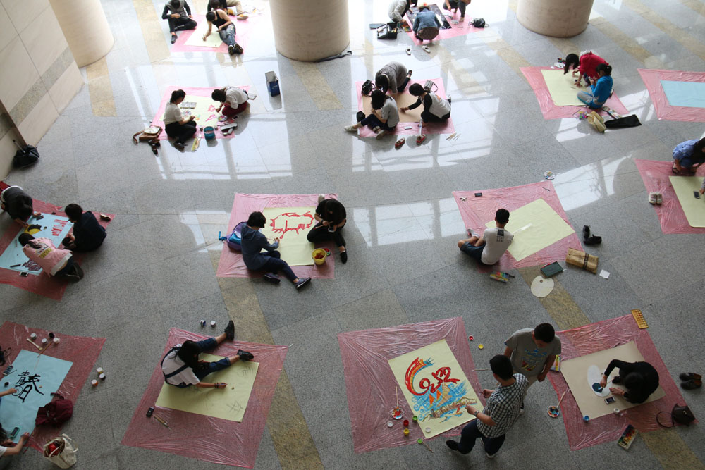 4月27日下午,于南校岩松堂一楼大厅举办了“五四青春,艺启梦想”主题海报现场设计大赛。比赛吸引了全校各个学院的同学,大家朝气蓬勃,成群结队地走进了赛场。 比赛现场气氛轻松欢快,在优雅的音乐声中,参赛选手们灵感涌现,在海报上泼墨挥洒,张扬个性。随着音乐,选手们仿佛抛开了所有的杂念,沉浸在艺术的殿堂中。比赛分为团体组和个人组,团体组激烈地对画面展开讨论,交流彼此的海报构思;个人组则沉浸在自己的构思中,忘我地画着属于自己的小天地。有的海报张显着年轻的激情,有的海报蕴含着唯美的意境,有的海报怀旧复古,还有的海报充满了积极向上的正能量。 据悉,此次绘出的优秀海报设计作品将会于5月4日在pg电子官方网站一楼大厅内展示,学生们用自己的方式为“五四”青年节送上了别具特色的祝福!