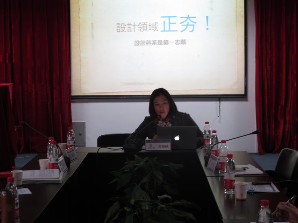随后,郑霈绒老师结合自己本校设计系学生的学习现状、研究成果及近年的一系列获奖作品,从当前台湾的设计现状、趋势、设计关注点等方面为在场师生做了一一阐述,解析了设计的深刻内涵和它独有的魅力。讲座过程中郑老师不时播放一些近年大同大学设计专业学生的一些国际获奖作品,和大家分享了她“设计有时不是单单在做设计本身,而是更多程度的一种在地文化的呈现;一个没有感情的设计是冰冷的,而赋予人性意义的作品方能打动人心”的观点。在交流中,郑霈绒老师就大同大学的概况、设计学院课程设置、工作营开展、国际交换生的交流形式、校友做了详细介绍。最后,郑老师就本次工作营开展安排及后期相关课程活动计划跟在场师生做了愉快的分享。