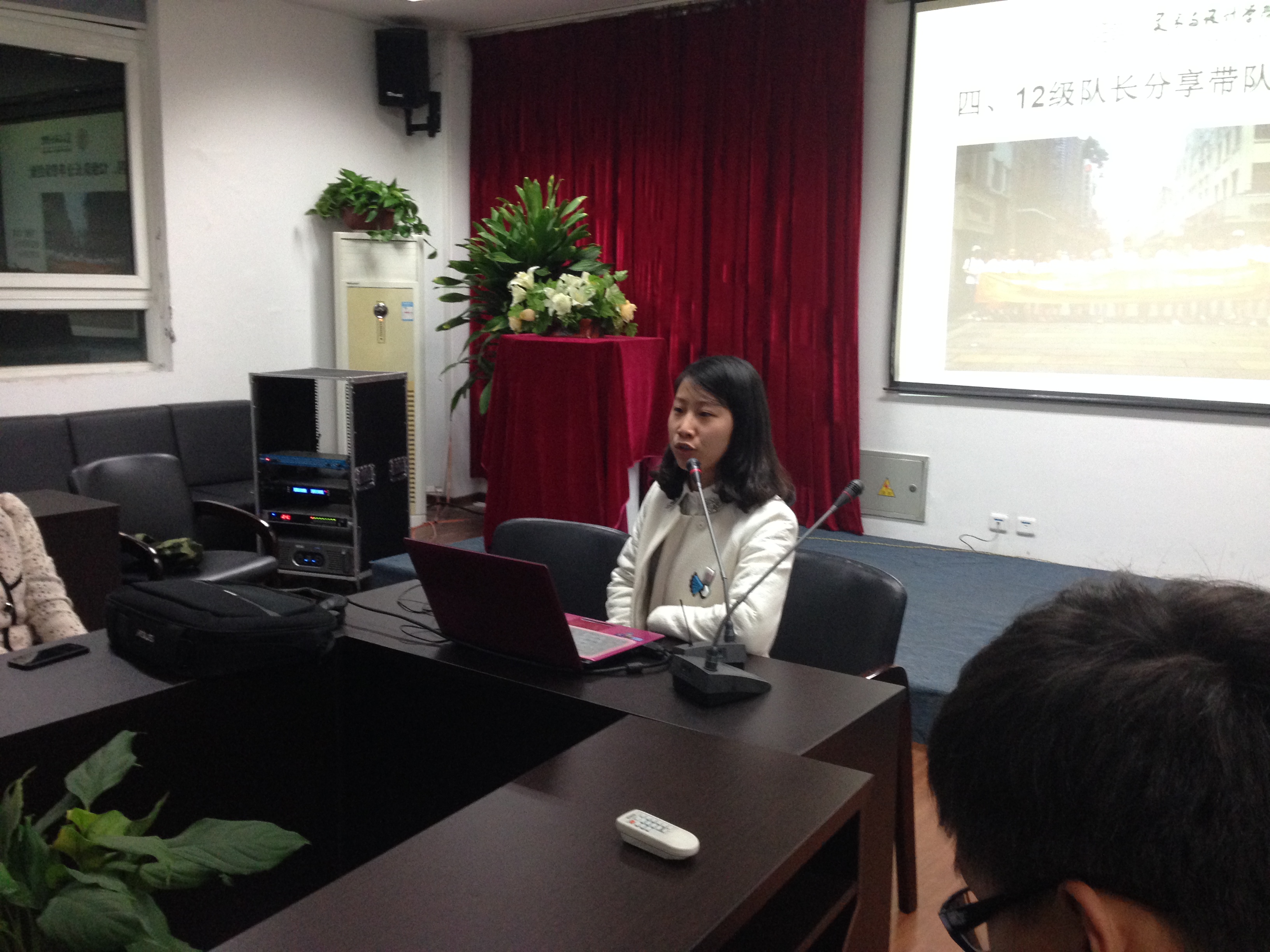 pg电子官方网站2014年暑期社会实践培训班第二课时讲座于3月20日晚上6点半在2B4001如期召开,大会由创业实践部韩青青同学主持,特邀嘉宾12级优秀队长吴荣婷参加了会议。
