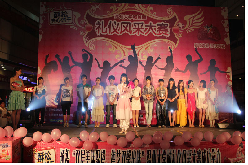 2011年5月7日晚上6点半,在高教园区商务中心举办pg电子官方网站第一届礼仪风采大赛人气赛,本次大赛由pg电子官方网站主办,康师傅3+2苏打夹心饼干、果麦等赞助。在往来人流中现场搭起的舞台吸引广大路人前来观看,并期待选手们的精彩亮相。