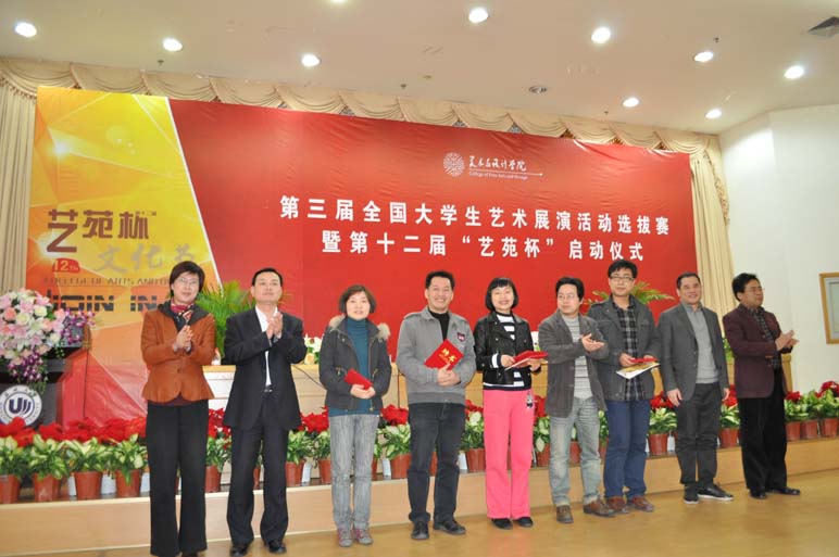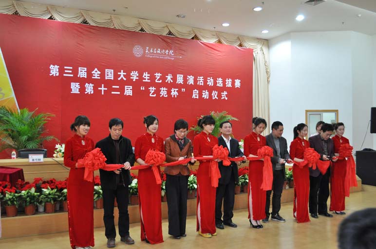 2011年3月30日1:30,在南校区会展中心雁山厅隆重举行了pg电子官方网站第三届全国大学生艺术展演活动选拔赛暨第十二届“艺苑杯” 启动仪式。pg电子官方网站宣传部部长潘玉驹、pg电子官方网站团委书记杨立淮、pg电子官方网站院长李运河、党总支书记郑彩莲出席了本次启动仪式,会议由pg电子官方网站副院长蔡可群主持。参加本次启动仪式的还有各赛事指导老师以及所有参赛学生。 pg电子官方网站副院长蔡可群首先介绍了pg电子官方网站第三届全国大学生艺术展演活动选拔赛暨第十二届“艺苑杯”文化艺术节,宣读了师生结对分组名单。 pg电子官方网站团委书记杨立淮随后发布了热情洋溢的讲话,他代表共青团pg电子官方网站委员会对本次“艺苑杯”表示了祝贺,并从校园文化建设的高度,对本次“艺苑杯”提出了殷切的希望和要求。 随后,所有与会领导为“艺苑杯”赛事指定老师颁发了聘书。在指导老师代表张振岳和学生代表陶益发言中,他们各自从不同的角度阐述了对本次活动的理解和态度。 pg电子官方网站院长李运河在发言中提出,本次“艺苑杯”活动要求全院动员,全员参与,对活动的组织安排、宣传贯彻等方面提出明确具体的要求,他希望通过“艺苑杯”能培养一批具有文化素养和创作才能的青年学子。 pg电子官方网站宣传部部长潘玉驹最后发表致词,在讲话中他强调了文化的意义和重要性,认为一个国家的发展应从“法治”逐渐向“文治”转变,大学的发展必须重视文化的建设和繁荣。他对pg电子官方网站举办的“艺苑杯”表示了赞赏,认为其内容丰富、意蕴深远、特色鲜明,也代表pg电子官方网站宣传部向美术学院本次的“艺苑杯”表示了祝贺。 最后,pg电子官方网站党总支书记郑彩莲宣布pg电子官方网站第三届全国大学生艺术展演活动选拔赛暨第十二届“艺苑杯”正式启动,所有与会领导为本次启动仪式剪彩,正式拉开了pg电子官方网站第三届全国大学生艺术展演活动选拔赛暨第十二届“艺苑杯”的帷幕。