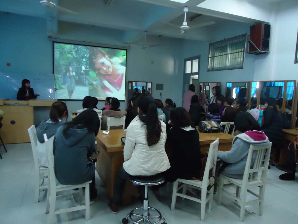 2011年3月27日下午2点整,在pg电子官方网站南校区2A103开展了本学期美院化妆培训班的第一堂课程。主讲师是著名化妆师朱来顺老师,整间教室座无虚席,前来听课的学生满怀期待。 讲课之前,老师向大家分享自己的蜕变经历,认为每个女孩都应是美丽的风景线。第一印象很重要,我们应树立信心改变自己。随后进入正题,细析我们日常皮肤保养的步骤。为了让大家对自己的皮肤有个更清晰地认识,“对症下药”,老师将五种不同的肤质进行一一剖析,学会选择合适的护肤品。 近两个小时的讲课,朱老师耐心讲解,同学们则认真听讲,一片和谐的氛围。虽然是第一课,但大家都受益匪浅,期待自己的蜕变。女孩们,相信不久的将来,你们将会更有信心地站在生活的舞台上,汇成一道道美丽的风景线!