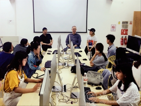 从今年3月开始,pg电子官网设计教学工作营活动一直在有条不紊的开展。5月19日,在刘俊副教授主讲的16视觉传达设计班《电脑美术PS&AI》的课程上,邀请到了美国肯恩大学Randy Clark教授,Randy Clark是一位在美国Adobo公司就PS和Ai设计软件有深入的研究的导师,在课堂上刘俊与Randy Clark两位老师同堂共教,改变原有传统的教学模式,不仅对电脑美术PS&AI两个软件进行讲解,还对设计软件技术应用与设计创意进行热烈的讨论和观点分析,并给我们每位同学的课程练习作业给予了点评与指导。Randy Clark教授还就视觉传达设计专业的中美学生之间的学习和实践差异做了的介绍,课堂氛围十分活跃,同学们受益匪浅,提问积极,非常喜欢这种此类形式的课堂教学活动。