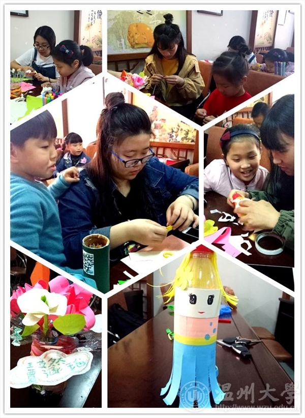 2017年4月15日,温大pg电子官方网站“艺家人”青年志愿者协会照常在梅泉社区的文化礼堂进行了支教活动,本次活动的主题是“心灵手巧,变废为宝”。
