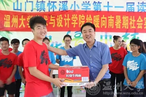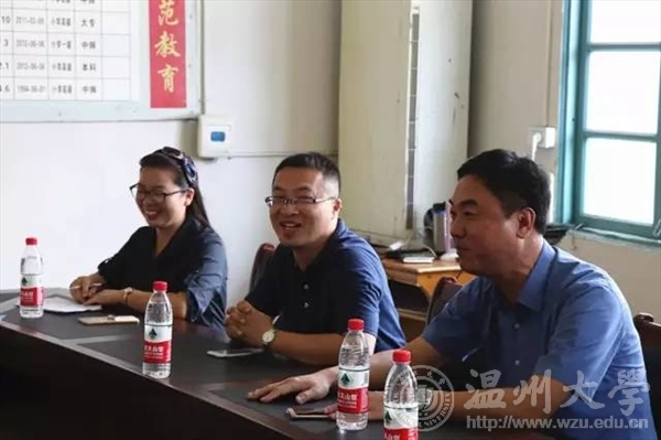 7月15日上午,校党委委员、副校长钱强在校团委副书记魏一、美院党总支副书记杨振海、校团委办公室成晓等陪同下,专程赴平阳县怀溪镇中心小学亲切慰问pg电子官网“绘暖向南”暑期社会实践队,怀溪镇委书记金建辉陪同慰问。