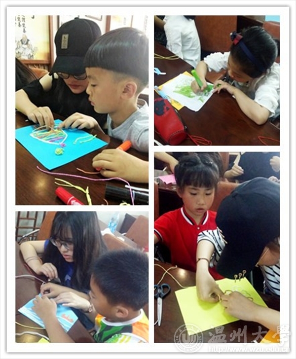 2017年5月13日,立夏的悄然带来的炎热天气并没有降低志愿者们支教的热情,今天梅泉支教进入了第八课。本次支教活动的主题为“手工毛线画制作”。毛线画作为一种最普通不过的手工艺品,它显示着人们对待生活的态度和欣赏美的情趣。毛线的材料随手可得,许许多多可能就是废弃的边角料,但在心灵手巧的艺术爱好者手中就可以变成一幅幅美丽的艺术品。此次的活动同样需要丰富的想象力和良好的手工动手能力,小朋友们将在志愿者的指导下开始制作:首先要把制作的作品在卡纸上画出,再把画出的图形用记号笔描出,然后用宽双面胶或是手工胶把整张画好图的卡纸覆盖,最后是将已选好颜色搭配的毛线依照图形的样子贴牢,过程只要细心和耐心,就可以将一幅幅可爱充满活力的毛线画制作完成。活动最后老师和主讲人对小朋友们的作品进行了逐个的点评并合影留念,并且把选出的优秀作品进行展览。小朋友们脸上洋溢着满满的笑意,在动手的同时,丰富了他们的课余生活、提高了技能、获得了成功的情感满足,大大提高了小朋友们对学习生活的积极性,小朋友们基本上独立完成了自己满意的作品。此次梅泉支教取得了圆满成功。图:项伊慧洪心怡文:朱灵睿 鲍彬彬