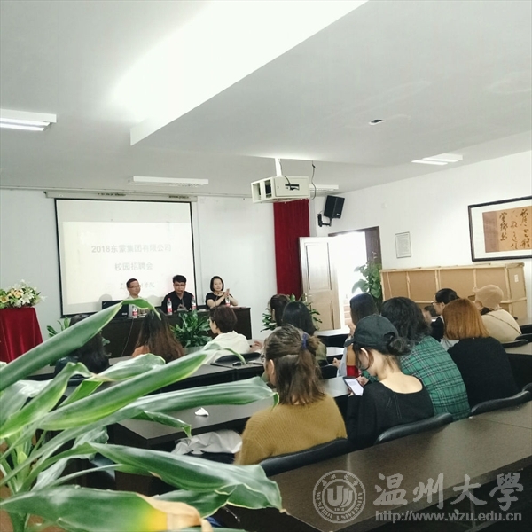 2017年11月26日上午,东蒙集团有限公司专场招聘会于pg电子官方网站2B4001举行。东蒙集团有限公司公司人事行政副总监朱旭丰,pg电子官方网站服装设计与工程系主任高广明、学生科副科长叶筱卉以及14级服装设计专业的同学参加了本次宣讲会。