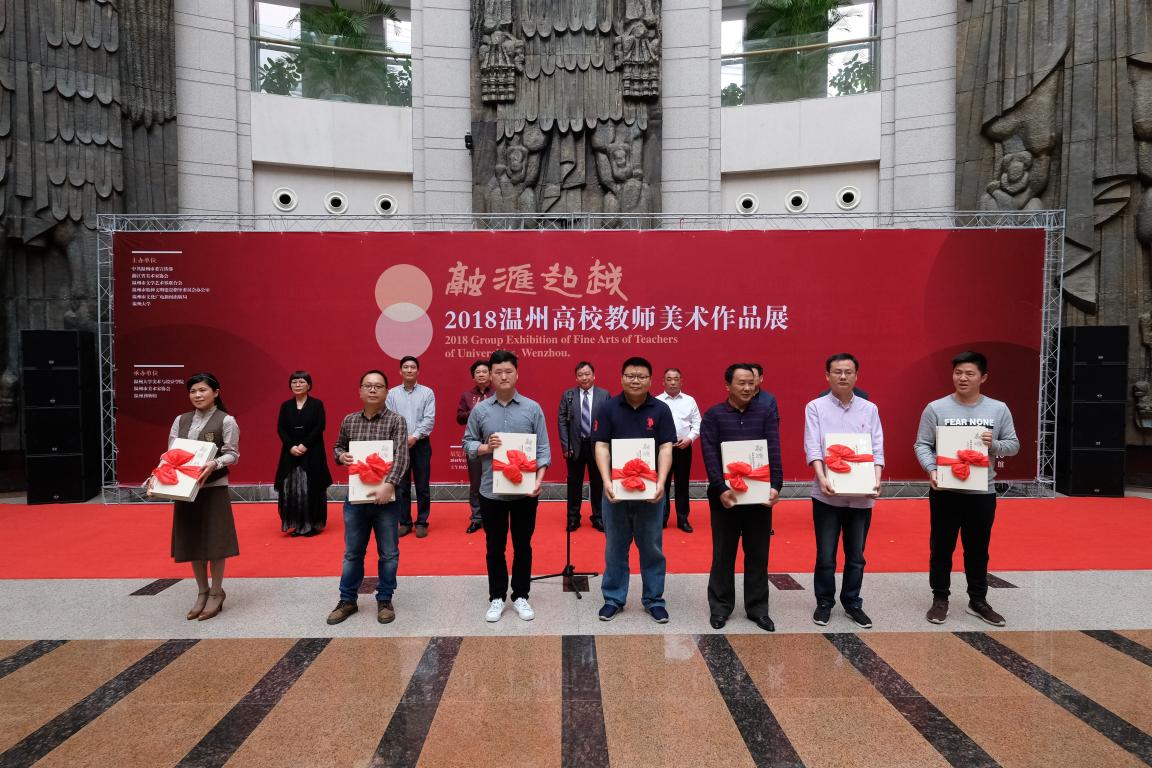 4月3日上午,“融汇超越”——2018温州高校教师美术作品展在温州市博物馆隆重开幕。出席开幕式的领导嘉宾有:pg电子官方网站党委副书记赵敏,中共温州市委宣传部副部长魏平生,浙江省文联副主席、温州市文联主席邹跃飞,温州市文联副主席、pg电子官方网站院长李运河,温州市文明办副主任余庆,温州市文广新局副局长李方喜,浙江省美术家协会副主席、温州市美术家协会主席蔡瑞蓉,特邀嘉宾还有原校党委书记陈艾华,市教育局高教处处长黄万统,另有叶玉昶、沈尧伟、钟式震、马亦钊、张如元、袁纲平、金松、陈钦权等老教授,美术家协会戴宏海、张成毕、陈旭海、李崇高等同仁,书法家协会汪廷汉、陈出新、陈胜武等同仁,书画院郑方伟、陈默、张真恺、林翼如等同仁,此外,学校老干部工作部部长陈慧、成人(继续)教育学院院长胡记芳等学校部门(学院)领导,pg电子官方网站党总支书记张丽萍,副院长谢子静、张晓剑,副书记杨振海,学院师生代表200余人参加了开幕式。群贤毕至,少长咸集 。