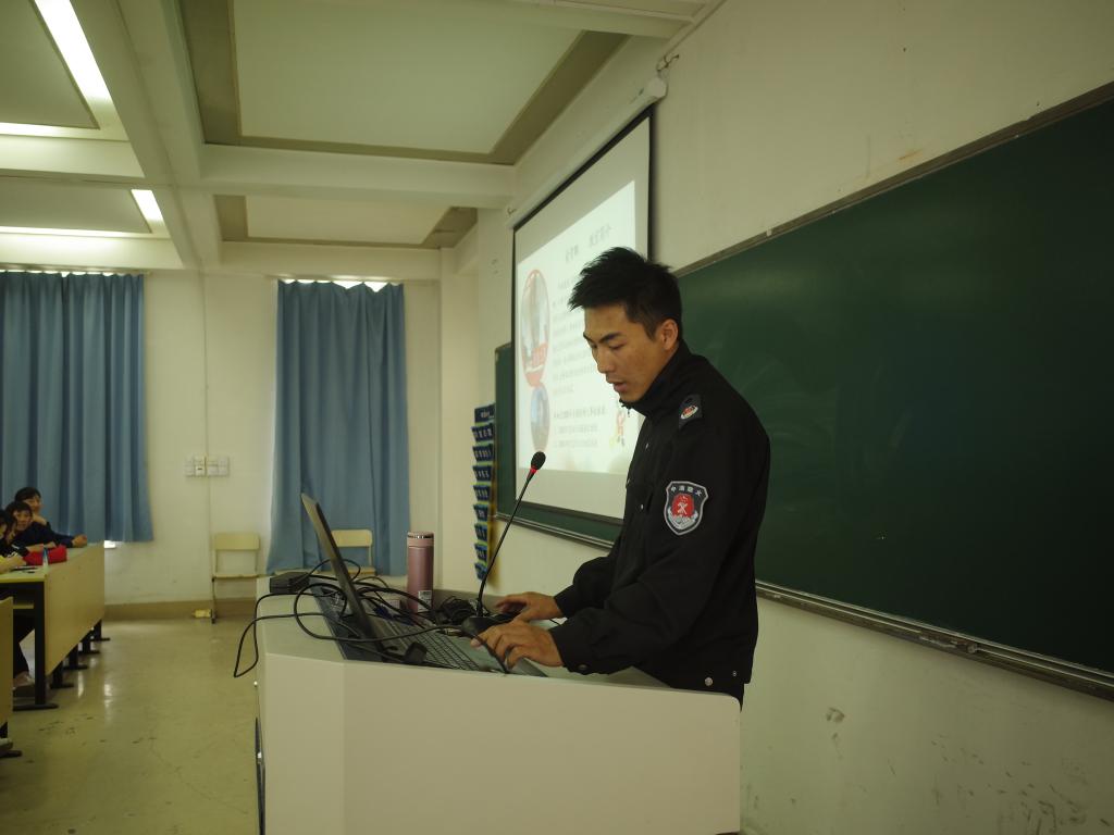 4月11号下午,由pg电子官方网站牵头举行的校园安全月活动——消防安全知识讲座在南校区3A-201召开。讲座由从事消防工作14年的俞贵明教官主讲,美院大一同学及保卫处工作人员参加了讲座。