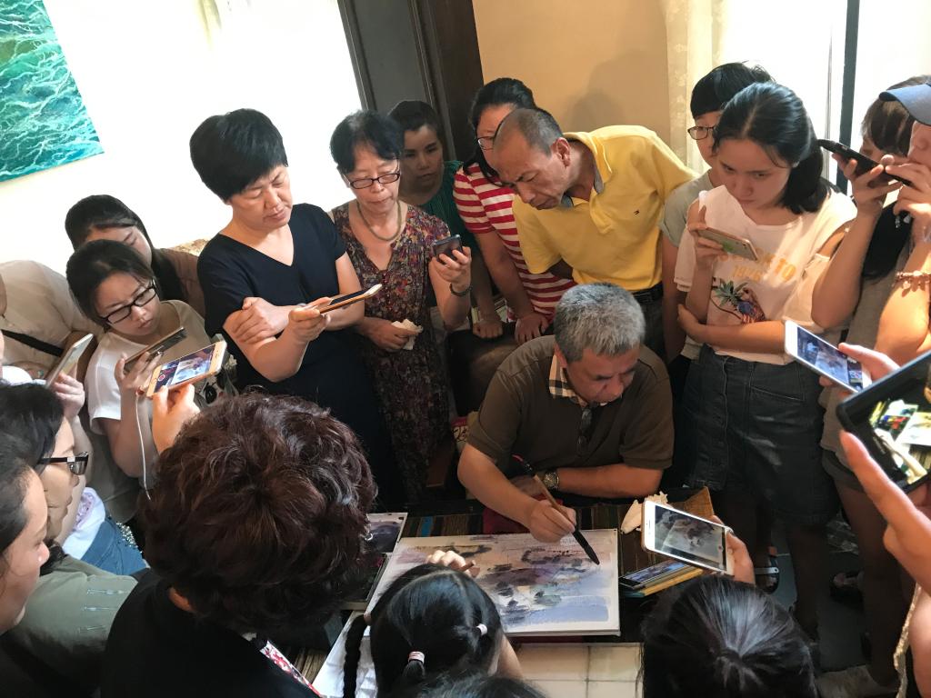 7月1日下午,在温州市图书馆朴念文化客厅“籀园讲坛”再次迎来pg电子官方网站由pg电子官方网站主办的“传统文化与时尚生活”系列主题之八“走近水彩,了解水彩,快乐水彩”讲座,讲座由pg电子官方网站李利民老师主讲。现场加座后仍座无虚席,李老师幽默风趣的演讲风格,观众的热情洋溢,使得现场氛围持续保持着热烈与活跃。