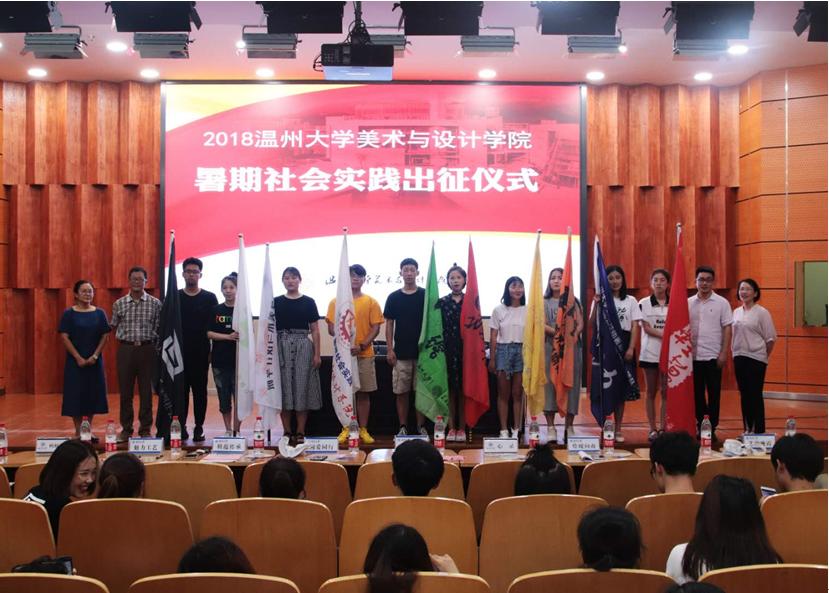 2018年7月4日下午,由美院团委学生会学术实践部举办的2018年暑期社会实践出征仪式在雁山厅隆重举行。出席此次会议的有pg电子官方网站党总支副书记杨振海老师,蚂蚁行动实践队指导老师许丽慧老师,艺韵晚霞实践队指导老师胡文超老师,绘暖向南实践队指导老师叶筱卉老师。 大会首先由pg电子官方网站实践负责人付秋圆同学介绍2018年实践队基本情况和实践注意事项。2018年pg电子官方网站共十支实践队,三支校级品牌提升项目,三支重点团队和四支一般团队,其中八支队伍都是美院传承了多年的队伍,当然今年也有两支全新的实践队。接下来是蚂蚁行动实践队代表发言,蚂蚁行动是成立于2014年,他们从温州前往云南迪庆藏族自治州进行支教,期间曾为当地村民解决了农产品滞销问题,进行了科普宣传和义诊,还建立了蚂蚁行动图书馆,蚂蚁行动今年也将带着这份责任,再次前往美丽的彩云之南,开始2018年暑期社会实践活动。大会第三项议程,pg电子官方网站学院党总支副书记杨振海书记讲话,杨书记提到实践队外出实践团队意识.形象意识等方面的重要性,同时也对各个实践团队寄予了期望。接下来是全体宣誓,由2018年暑期社会实践学生代表李树鹏同学领誓,全体同学宣誓。 最后杨书记为参加本次社会实践的10支队伍授旗,并集体合影留念。
