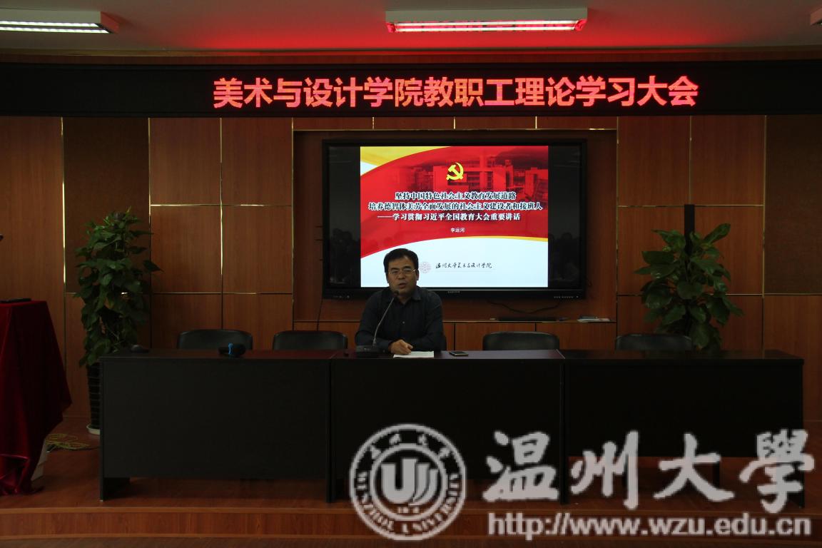 10月17日下午,pg电子官方网站在2B4001召开教职理论学习大会。学院领导班子成员,党总支委员,各支部书记、系(科)主任及全体教职工参加了学习会。会议由学院党总支书记张丽萍主持。 院长讲党课:坚定办学方向 创新理念思想 李运河院长传达学习习近平总书记全国教育大会重要讲话精神。李院长指出:“习近平总书记的讲话强调教育是功在当代利在千秋的德政工程,是国之大计、党之大计;教育的根本问题是‘培养什么人,怎样培养人,为谁培养人’;我们要坚持中国特色社会主义发展道路,立足基本国情,坚持改革创新,培养德智体美劳全面发展的社会主义建设者和接班人。”李院长认为,习近平总书记关于“培养什么人”的论述,有两个关键词:“德智体美劳”和“建设者和接班人”。纵观历史,每个国家都是按照自己的政治要求来培养人的,我们一是要坚定社会主义办学方向,为党为社会主义培养人;二要有新理念,新思想,新办法,面对新环境,新对象,要坚持改革创新,在坚定理想信念、厚植安国主义情怀、加强品德修养、增长知识见识、培养奋斗精神、增强综合素质等六个方面下功夫,办人民满意的教育。 “课程思政”专题讲座:充分理解内涵 有效把握实施策略 教师教育学院副院长彭小明教授做《“课程思政”的内涵与实施策略》辅导讲座。如何将“课程思政”融入专业教学?首先要弄清“课程思政”的内涵,其次要明白为什么提倡“课程思政”,最后要掌握“课程思政”的是实施策略。彭小明教授对这三个问题进行了系统的讲解,让全体教职工受益匪浅。课程思政顾名思义就是在(通识、专业)课程中渗透政治思想教育,广义地说是指在课堂教学中对学生进行整治思想、道德品质和人格个性等方面的教育。新时期我们高校的德育工作提倡“课程思政”,是因为“全课程、全方位、全过程、全员育人理念”没有完全树立起来。“课程思政”的实施策略首先要加强师德师风建设,教师要以德立身,以德立学,以德施教,做学生锤炼品格的引路人,做学生学习知识的引路人,做学生创新思维的引路人,做学生奉献祖国的引路。在实施方法上,要采用言传身教、活动体验、社会实践等多种形式,有意识、主动地融入核社会主义心价值观及中华优秀传统文化。 经验交流:潜移默化 任何课程都是思政教育的途径 经验交流环节由张晓剑、尹乃军、王业宏三位老师做课程思政经验分享。张晓剑老师以《中国美术史》的教学为例,课程的内容涉及到中国传统文化中的礼仪、节日、民俗活动,首先要把专业最核心的要点贯穿到位,感染学生,其次要对授课内容进行延展,讲述中国古代的社会政治、经济、文化和艺术成就,通过中西方文化的客观比较,既培养学生的批判思维,也能自然地展现中华文化的独有魅力。尹乃军老师介绍了艺术考察过程中的思政教育经验,从强化纪律、安全,遵守当地少数民族风俗以及博物馆考察等内容,了解我国各民族文化的博大精深,陶冶学生情操,培养爱国情怀。王业宏老师从课程设计方面对如何融入思政内容进行了交流,从思路、方法到成果、思考,关键在于树立正确的专业史观和价值观。最后,徐慧娟老师对出国访学课程教学和科研经验进行了分享。 本次教职工理论学习大会对教育的价值和功能,对全教会精神的学习和领悟做了很好的传达和探讨,作为二级学院培养什么人、如何培养人进一步指明了方向。同时,对课程思政的内涵以及实施策略进行了系统的讲解,对如何将思政教育融入课程给老师们很大的启发,为学院今后推进课程思政工作指明了有效途径。