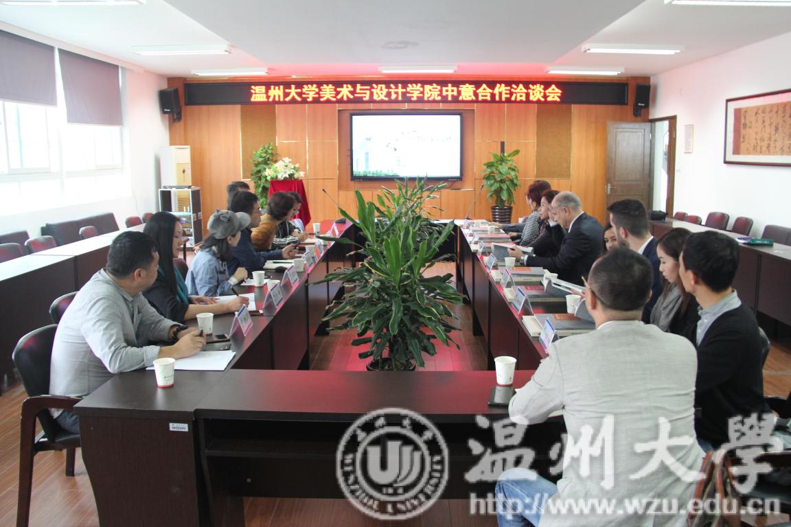 李运河致简要欢迎辞,合作洽谈在亲切友好的氛围中展开。双方负责人分别就办学历史、办学规模、专业设置、办学特色以及合作背景等进行了综合介绍,在谈及办学发展以及服务社会等环节,双方在发展需求上的意见高度契合。为深入推进中意双方合作交流,促进双方在人才培养、产业服务等方面的互通合作,双方在探讨共同建设国际时尚创意产业研究中心上达成高度一致。该中心将依托意大利-温州两地的教育及产业资源,在人才共育共享、产业转型及品牌孵化、时尚产品设计研发、时尚产业交流推广等方面共同开展友好合作。