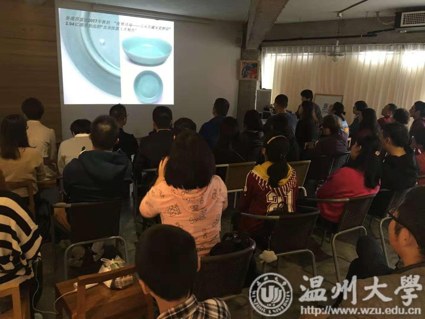 中国之美,美在文化艺术,而青瓷更是其中的代表之一。11月3日下午,由pg电子官方网站和温州市图书馆联合主办的“传统文化与时尚生活”系列活动之十一“青瓷之美知多少——龙泉青瓷审美与赏玩活动”在东瓯智库心工场四楼举办,主讲嘉宾为中国美术家协会会员、中国陶艺家协会会员、中国壁画家协会会员,pg电子官方网站关明新副教授,七十余人参与了本次活动,现场氛围轻松愉快。 龙泉窑开创于三国两晋,至南宋发展到顶峰,受浙江境内越窑、瓯窑、婺窑的影响颇多。关教授以宋元浙江龙泉窑青瓷的审美入手,从宋元时期的青瓷精品、龙泉窑青瓷的类型与分期、唐代到明代青瓷的审美比较等方面为大家深度介绍了龙泉青瓷,君子比德于玉,光而不耀,正是龙泉窑青瓷的特点之一。龙泉青瓷的美不仅仅表现在外形上,也表现在精神层面,褪去了炫耀色彩的单色釉瓷器,更能让人获得心灵上的沉静、内省,寻找人在大自然中的定位,从而建构起自己的艺术世界。 此外,嘉宾还带了一些兼具代表性的龙泉青瓷瓷片实物,让大家现场认识和赏玩,现场气氛更是达到高潮。 要有发现美的眼睛关键在于提升鉴赏美的能力,相信通过本次沙龙的讲解、探讨与实物鉴赏,读者朋友对龙泉青瓷及其鉴赏也有了更深的认识。