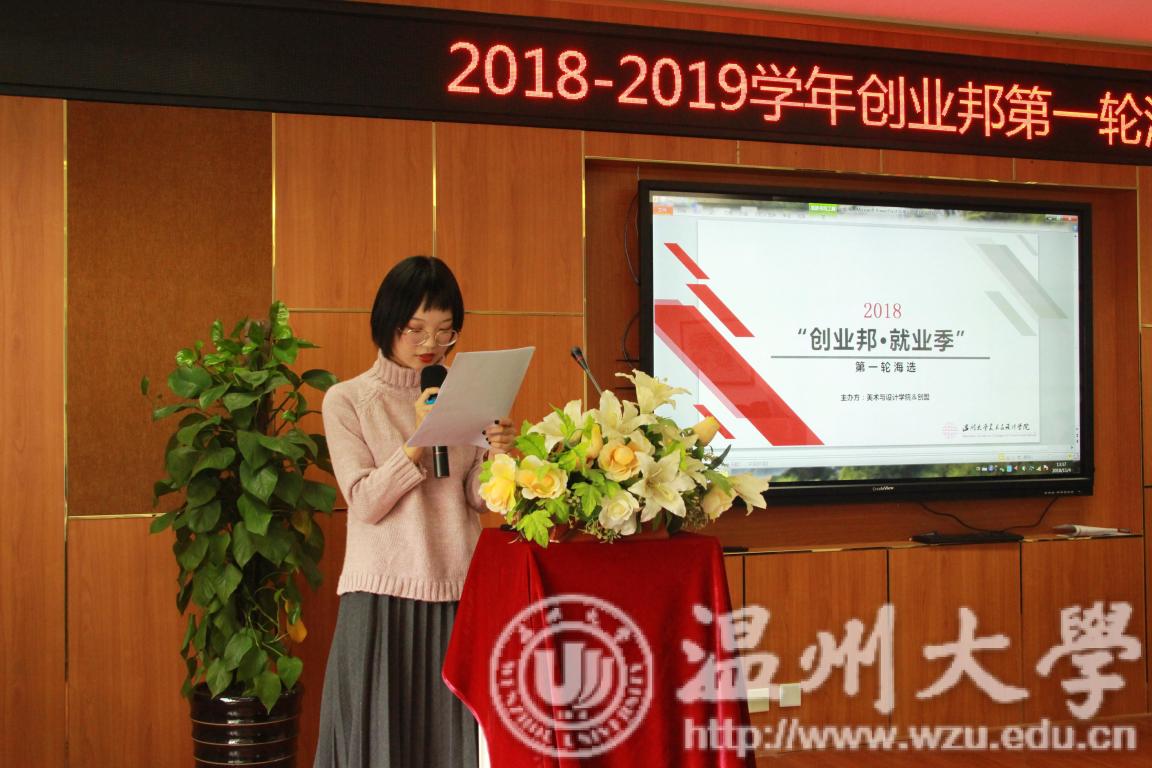 2018pg电子官方网站与温大创新创业联盟合作举办的 “创业邦·就业季”创业就业活动的海选大赛于11月4日下午在美院2B4001顺利召开。