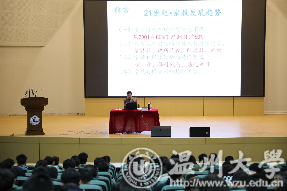 12月11日晚,本学期第一场形势与政策课讲座于南校9号楼报告厅举行。本次讲座邀请pg电子官方网站马克思主义学院党总支书记王柏民担任主讲。讲座内容为马克思主义宗教观的解读。 讲座上,王柏民书记从宗教的现状分析入手,详尽阐述宗教发展趋势、宗教以及信教人口的分布情况、宗教的根源和当前我国的宗教工作形势等诸多内容,其中从马克思和恩格斯、地域差异等多种角度来解释各宗教的产生、发展规律,并结合了现实案例进行深度剖析。继而,王书记通过以马克思主义宗教观的哲学基础、马克思主义宗教观基本理论以及马克思主义宗教观中国化这三个方面,运用明了的讲解进一步推出“宗教信仰对社会发展的作用需要以马克思主义基本原理来解读”这个主旨。其次,他提到,社会主义条件下宗教作为一种社会历史文化现象,它的长期存在是一种客观现实,不以人们的主观意志为转移。马克思的宗教观对于正确把握当代宗教的发展态势具有指导意义。宗教反映现实世界,宗教也是文化现象,应积极引导宗教与社会主义社会相适应,必须始终坚持中国化的方向。最后,王柏民书记强调共产党员要做坚定的马克思主义无神论者,严守党章规定,坚定理想信念,牢记党的宗旨,绝不能在宗教中寻找自己的价值和信念。