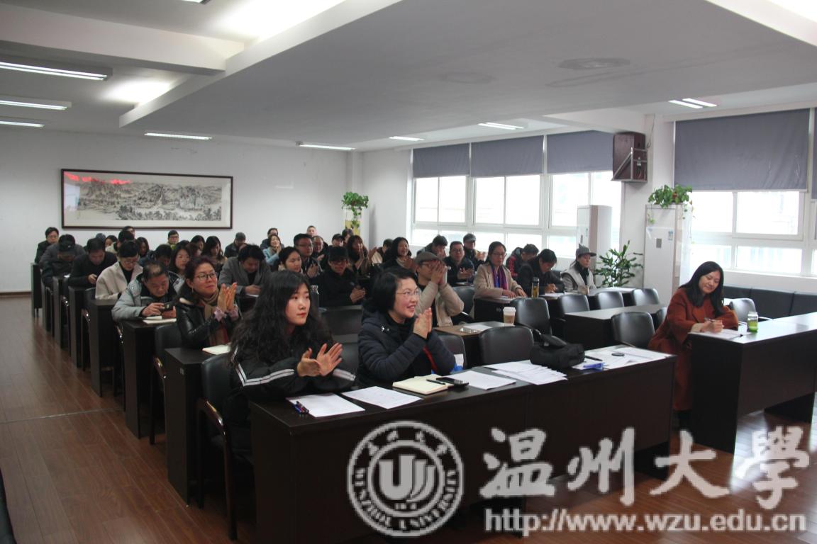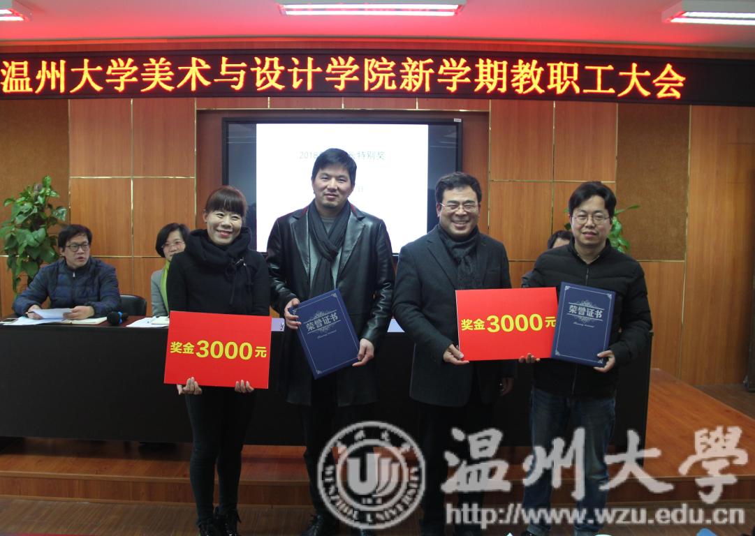 2019年2月27日下午,pg电子官方网站在2B4001召开新学期全体教职工大会。会议由院党总支书记张丽萍主持。 会议伊始,张丽萍专门宣读了2018年获得学校各类优秀荣誉的教师名单,特别口头表扬了过去一年为学院建设发展做出积极贡献的团队和个人:如2018年温州高校教师美术作品展团队、文化艺术传播教师团队、专业认证建设团队、服务地方团队、指导学科竞赛获奖团队、党建工作团队等。会议为2018年学院“院长特别奖”获得团队和个人颁奖。 院长李运河传达了新学期学校教代会的校长报告要点和书记讲话精神,结合学院实际,提出本学期工作重点。在传达学校教代会精神中,他特别强调学校调整为教学研究型大学的办学定位后,现阶段的两个重点目标:一是创成博士学位授予权单位,二是纳入省市共建的省重点高校建设。如何对应学校的新定位、新目标,李运河提出了今后一段时间学院的重点工作:一是要加快引进人才的步伐,对标学院十三五规划,认真落实人才引进和师资队伍建设这一发展关键;二是要走特色发展之路,pg电子官网作为应用型专业、应用型学科,培养应用型人才,要走 “服务地方、特色取胜”之路,走共性加个性、规范加特色、与本地产业结合之路。他提出本学期要着力在毕业展、课题申报、专业认证、市长杯等方面做好具体推进。 张丽萍做总结讲话。她要求全体教师“乘势而上、把握机遇、有所作为”,认清学校发展的大好形势,在申博和省重点校的建设中有所作为,以主人翁的态度和精神来共同推进学院学校的整体发展;要明确阶段重点工作,集中发力,走好每一步、收获一大步;要凝心聚力,齐心协力,紧紧围绕校院中心工作,推动学院发展再上新台阶。 副院长谢子静、张晓剑,副书记杨振海就各自分管工作做学期工作具体部署。(文 李丽\图 冀千里)