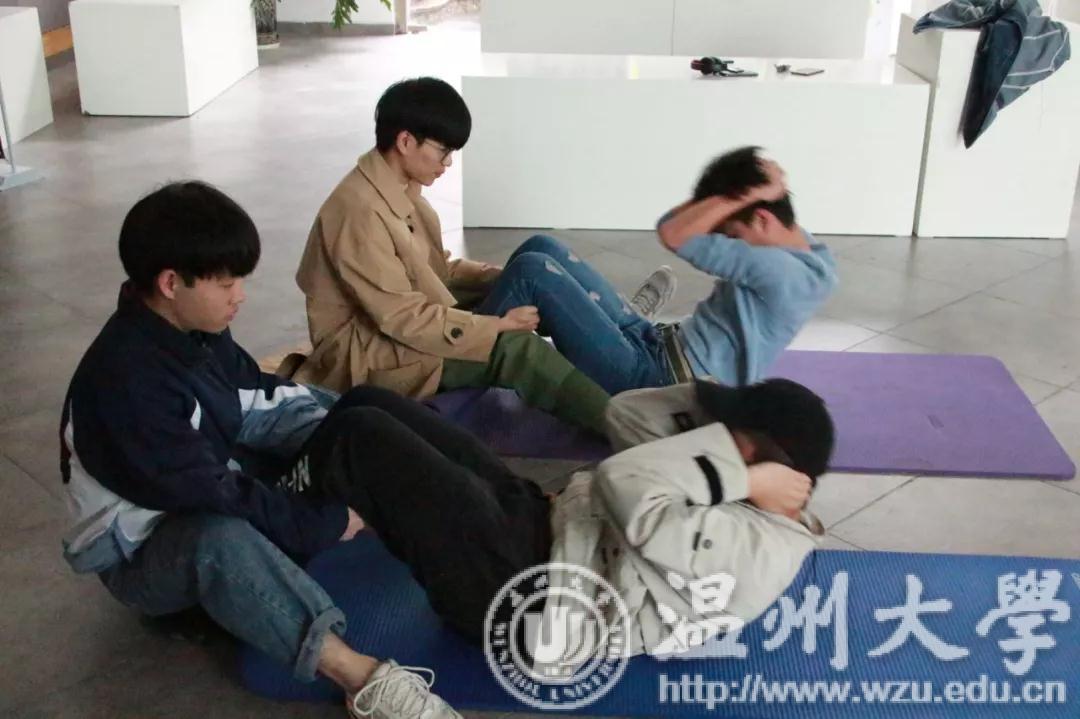 “春鸠鸣野树,细雨入池塘。潭上花微落,溪边草更长。”这个四月注定不凡,绵绵不断的细雨像柔软的微波在心间荡漾。虽然一直下着雨,但也无法阻挡美院学子的运动热情,延续上几周的“活力美院”春季运动会系列活动,4月3日,我们在美院教学楼一楼大厅开展了仰卧起坐和平板支撑比赛。