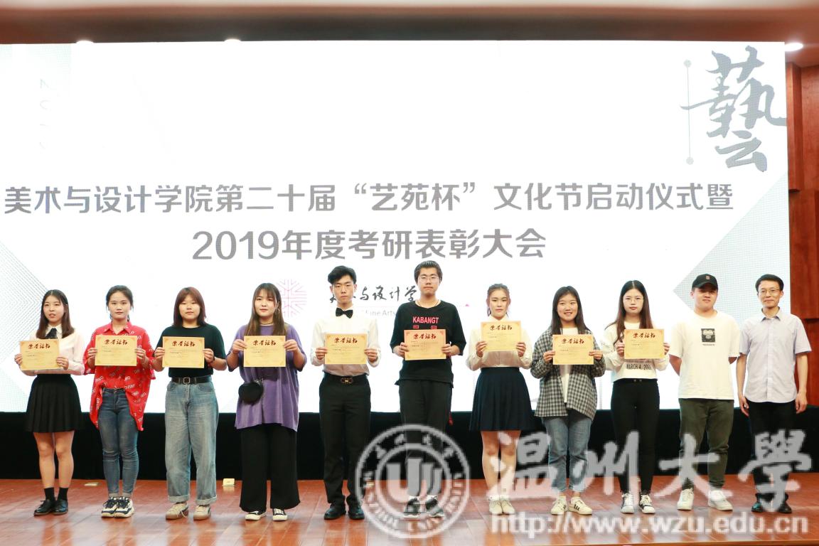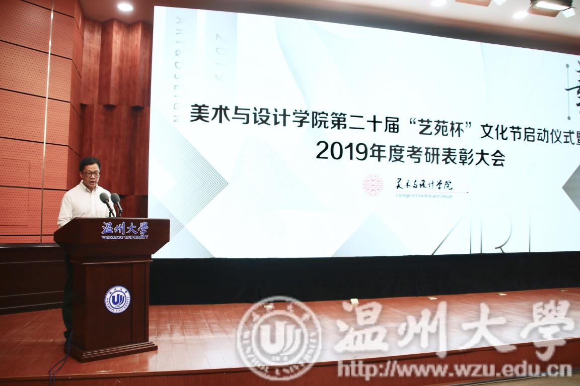 2019年4月24日下午,pg电子官方网站第二十届艺苑杯文化节启动仪式暨2019年度考研表彰大会在岩松堂雁山厅顺利举行。莅临本次启动仪式的领导有校党委宣传部副部长冯方盛,校教务处副处长胡瑜,校学工部副部长、学生处副处长高红星,校就业处副处长应中,校团委副书记魏一,超豪学区党委副书记李祖祥,pg电子官方网站院长李运河,党总支书记张丽萍,副院长张晓剑。参加本次活动的还有pg电子官方网站17、18级同学。启动仪式由美院党总支副书记杨振海主持。