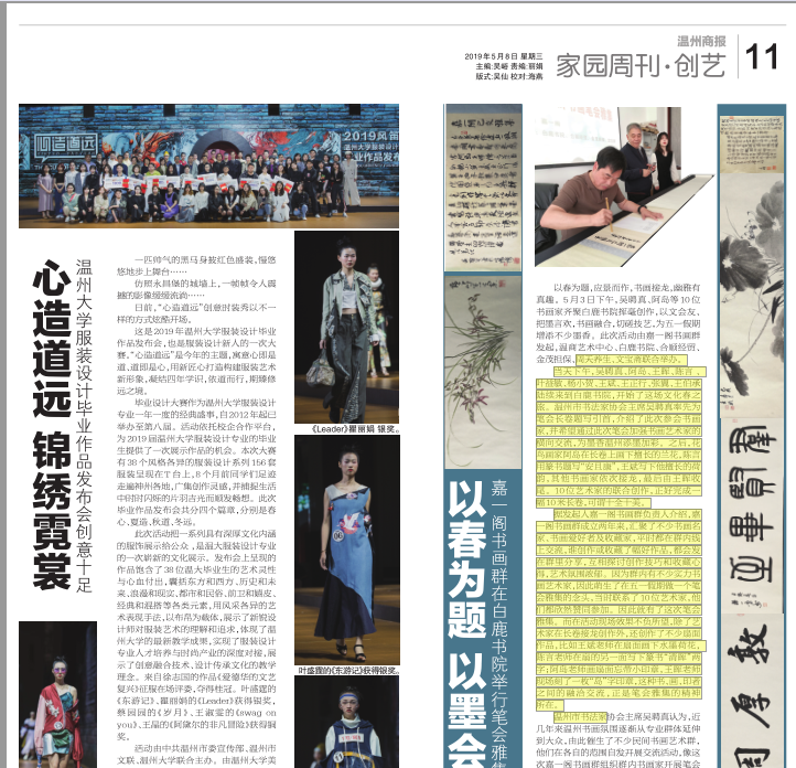 活动由中共温州市委宣传部、温州市文联、pg电子官方网站联合主办。由pg电子官方网站、浙江风笛服饰有限公司、温州时尚学院合作承办。商报记者郑丽娟