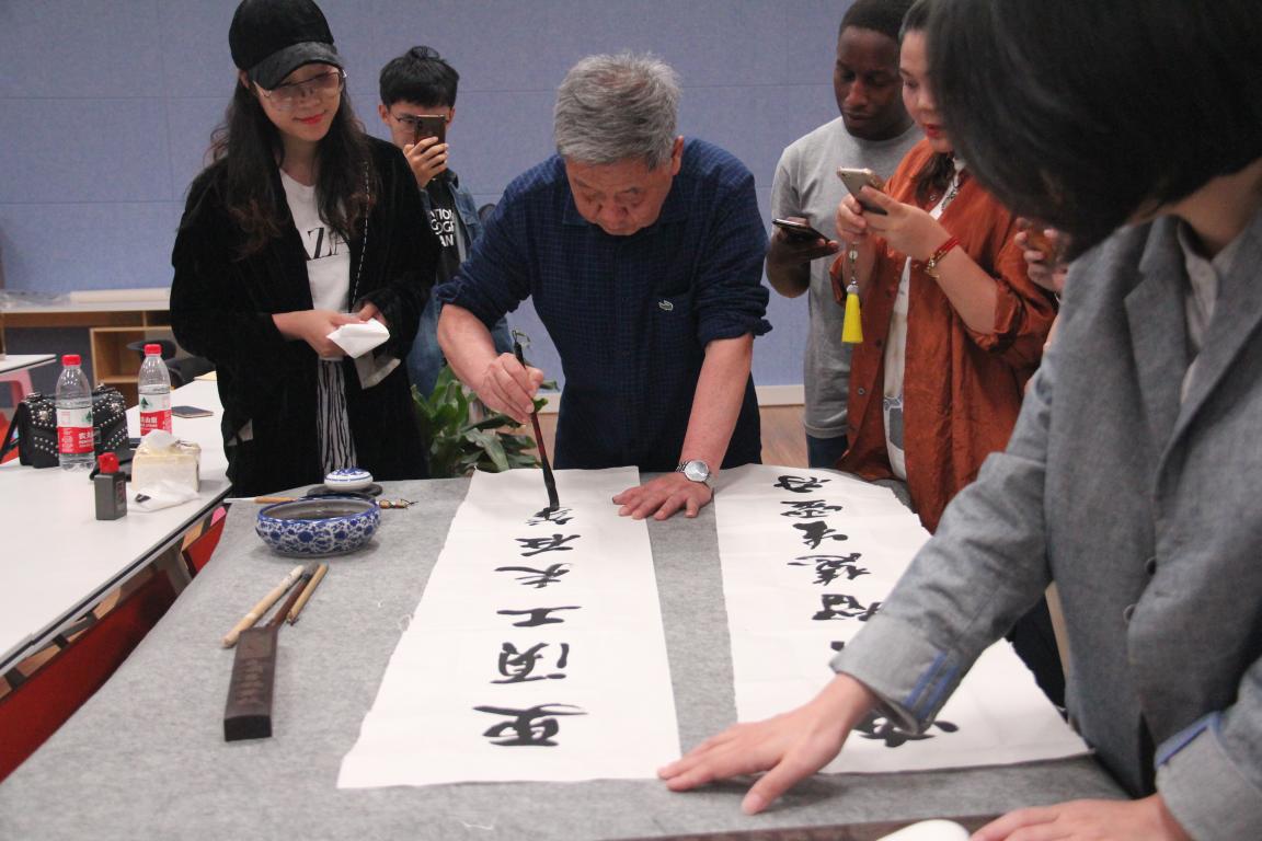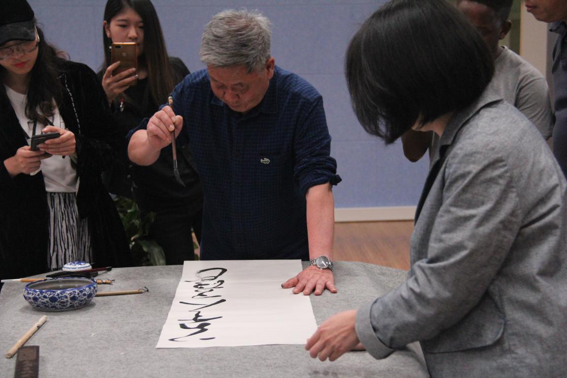 讲座结束后,马亦钊老师现场挥毫泼墨,创作出一幅精美的书法作品赠送给pg电子官方网站,李运河院长和张丽萍书记接受赠送并做答谢。