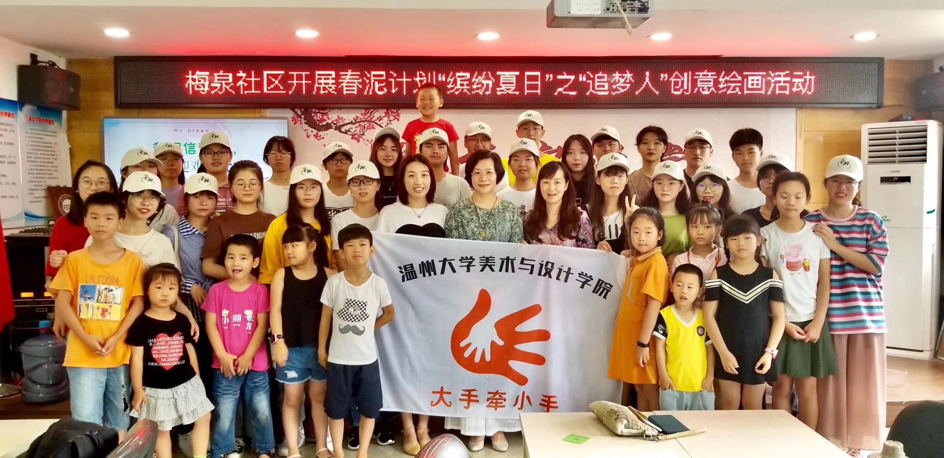 “大手牵小手”暑期社会实践队是一支由人文、化材、建工、数电、外语和美术等学院学生组成的暑期实践队,共有25名学生。该队伍致力于服务和关爱留守儿童和空巢老人,队伍通过探访,宣传,问卷调查以及支教等形式来开展社会实践活动。2019年7月16日上午9时许,pg电子官方网站美术学院院长谢子静、副书记杨丽君慰问了正在茶山街道梅泉社区开展活动的“大手牵小手”暑期社会实践队。