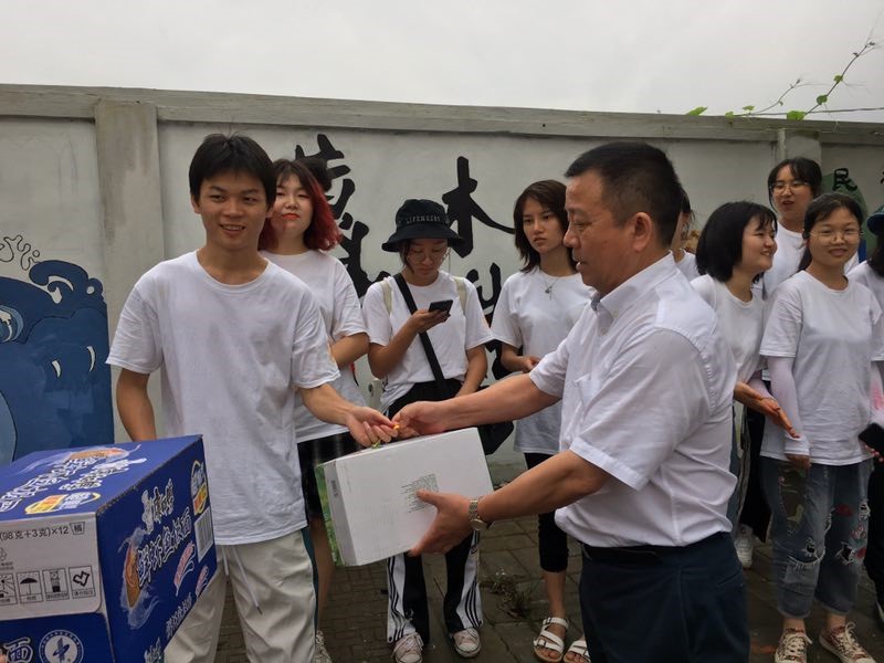 首先“艺绘”实践队队长向谢书记简单地介绍了实践队的基本情况——该支实践队由20名队员组成,它致力于社会主义核心价值观及非物质文化遗产的宣传与保护工作。在交谈中,谢书记肯定了大家为城镇面貌改变所做出的努力,也勉励大家作为当代大学生要结合自己所学的知识来服务社会。同时,对实践队员提出了要站在一定的高度策划整个实践活动,并呈现出一幅幅高质量、有意义的墙绘作品的要求。社会实践是一项非常有意义的活动,既可以锻炼能力,又可以磨砺意志。队员们纷纷表示一定会竭尽全力、全力以赴,为城镇容貌的提升贡献自己的力量。随后,谢树华书记为实践队员送上慰问品。
